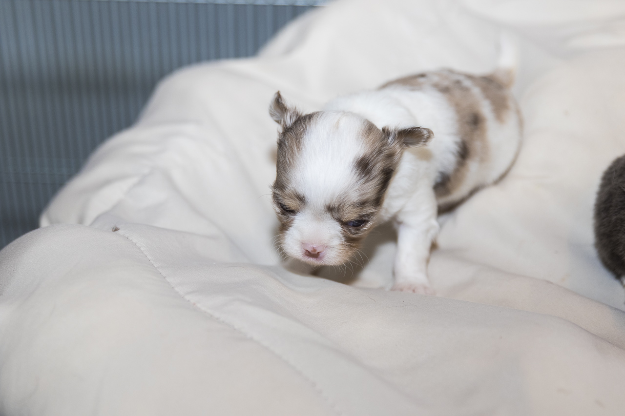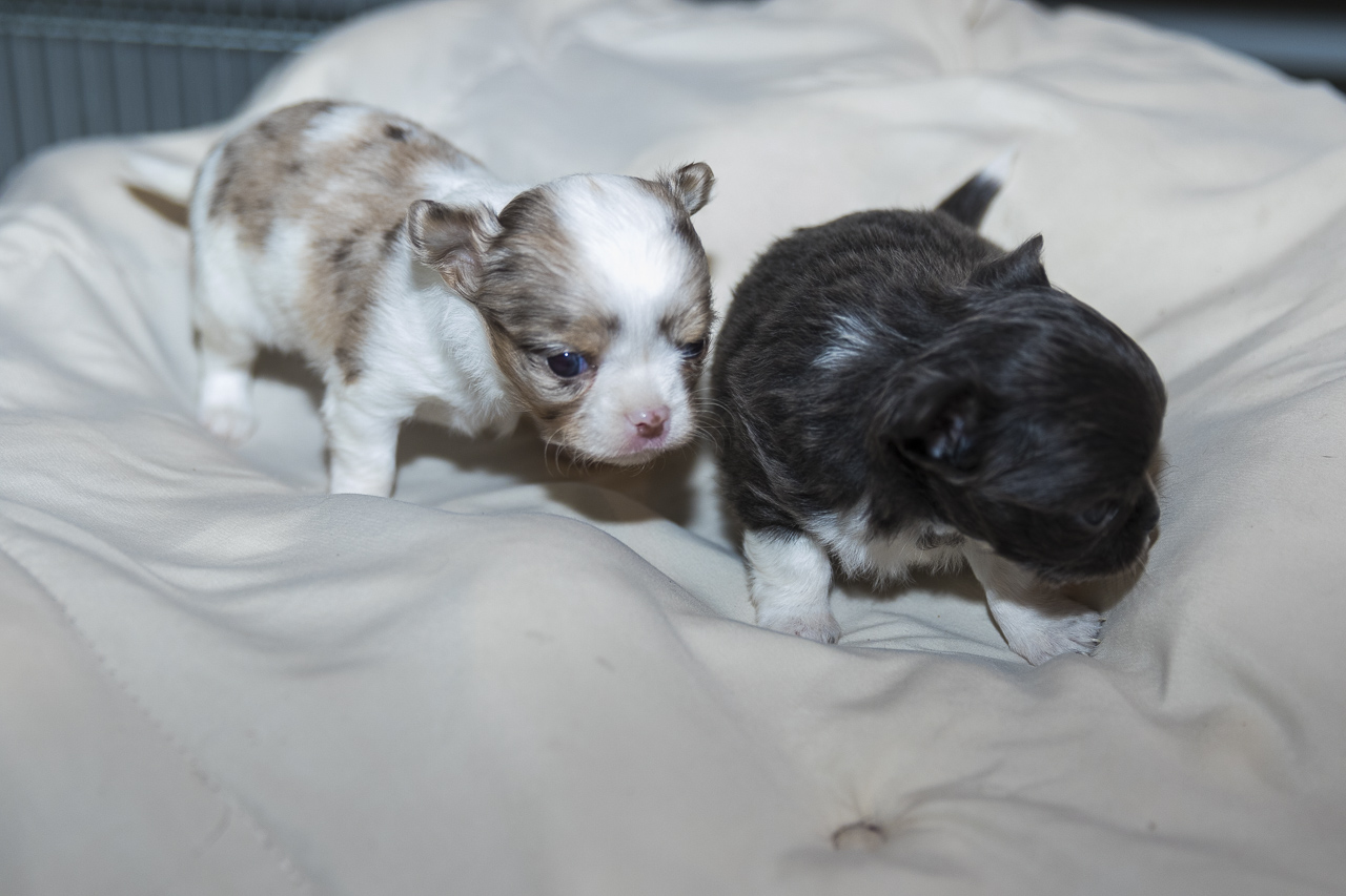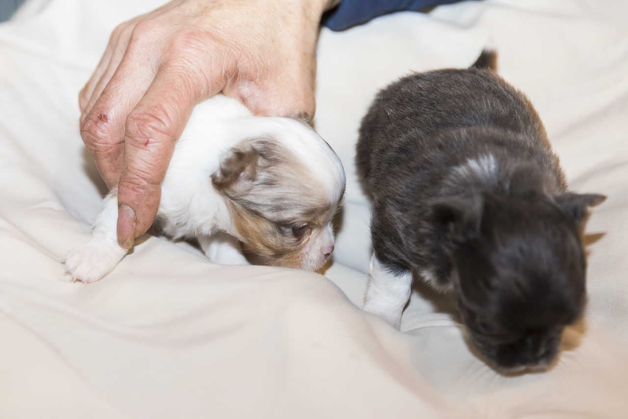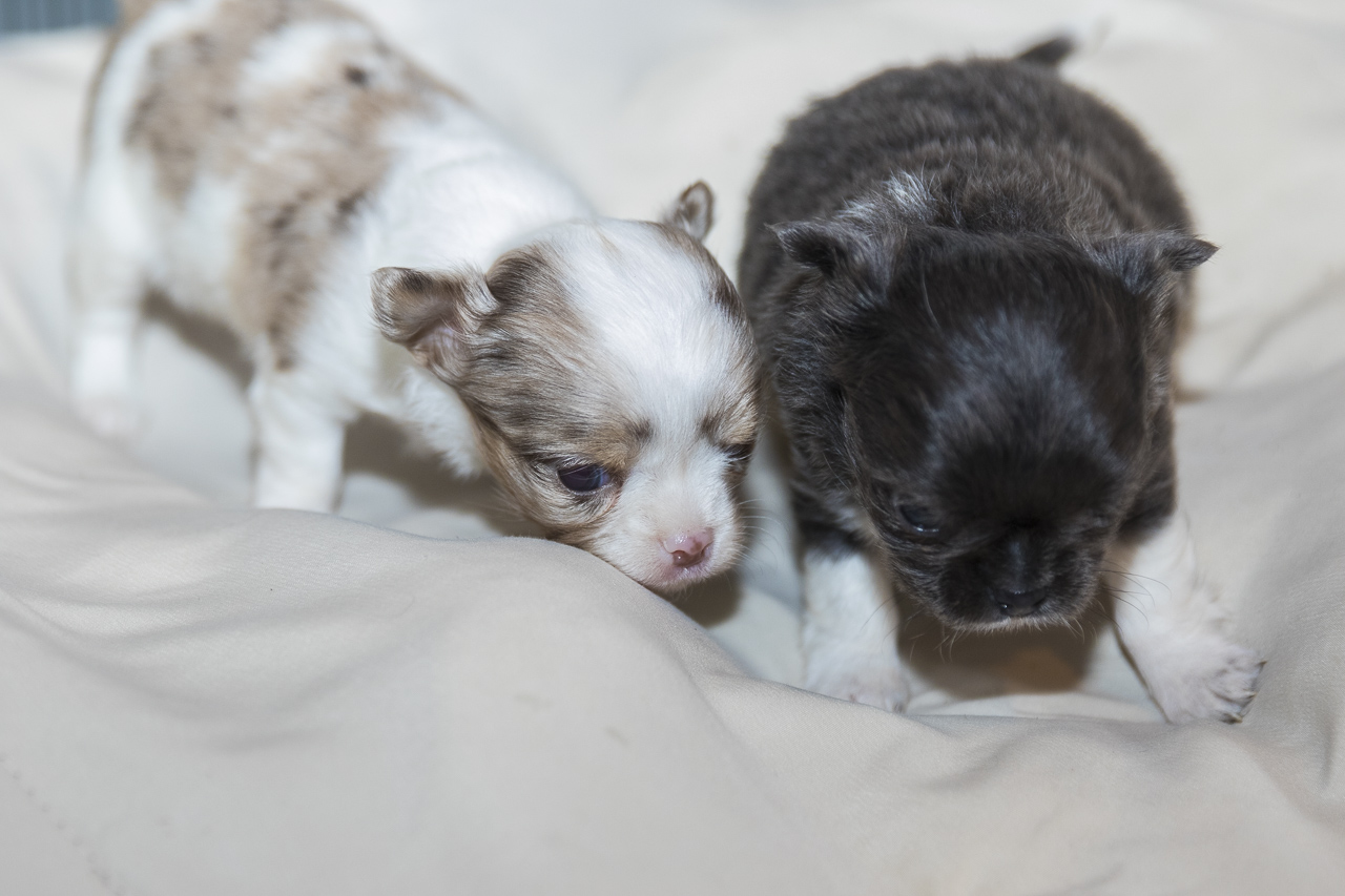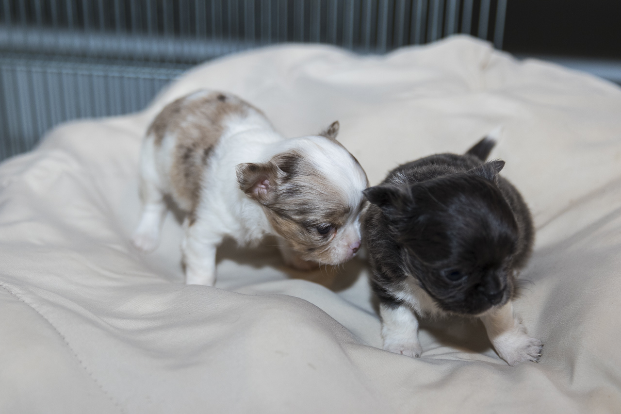 Unsere Miniwelpen wachsen und gedeihen. Sie haben ihr Gewicht inzwischen vervierfacht ?.