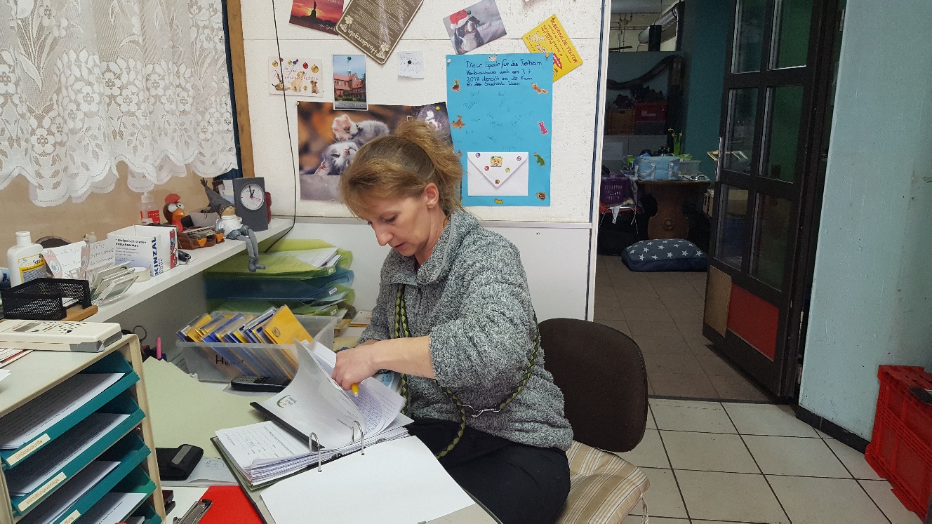 Also wurden alle Katzen eingefangen. Als erstes kontrollierten wir die Chips, ob inzwischen evtl. einer ausgefallen ist. Es folgte eine gründliche Prüfung unserer Bestandsbücher und der Krankenakten, ob alle Daten aktuell sind. Auch die Impfpässe wurden überprüft.