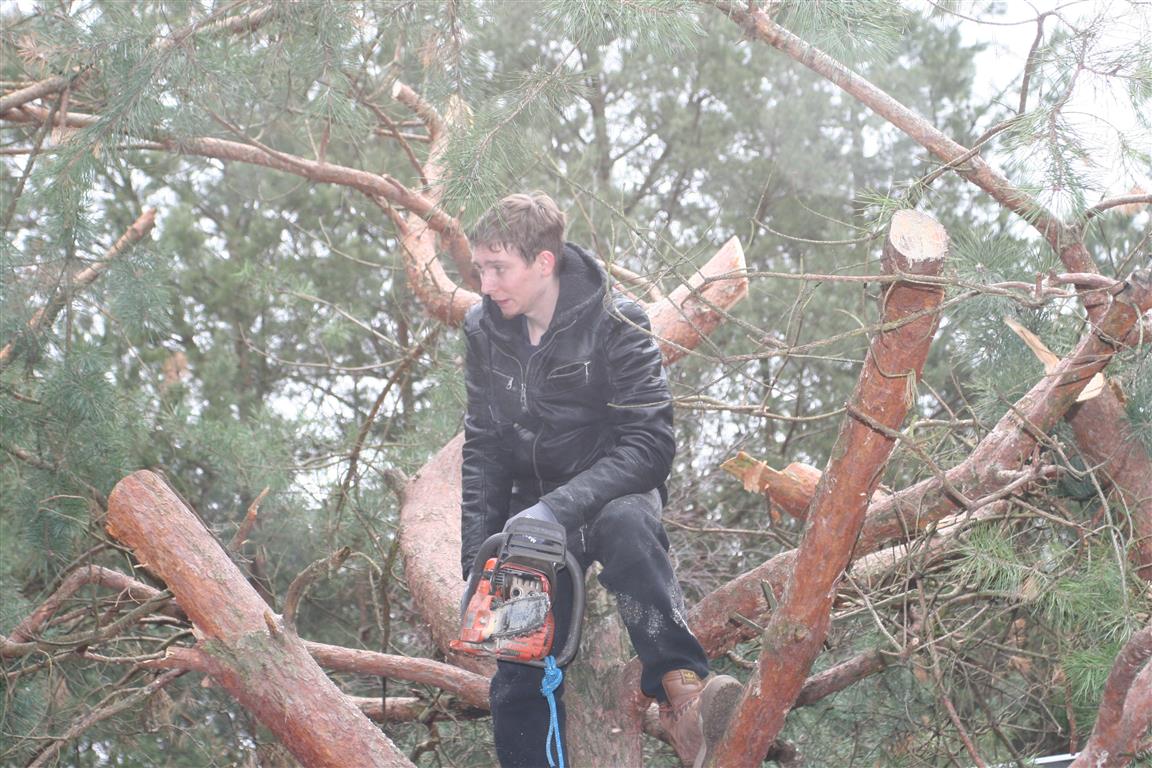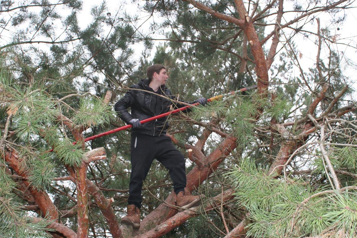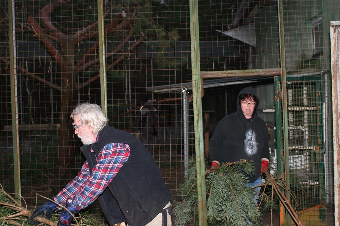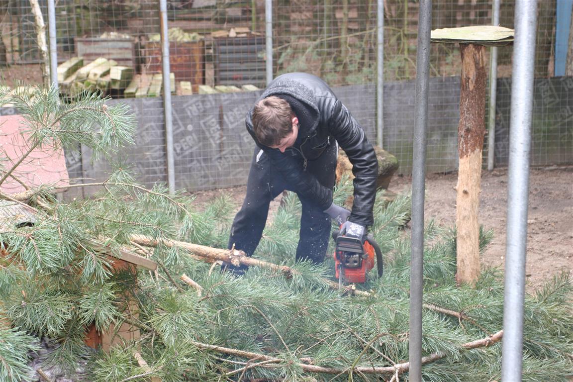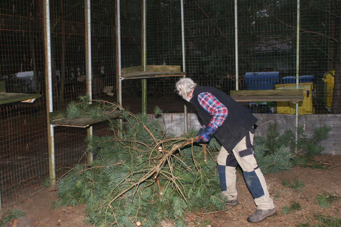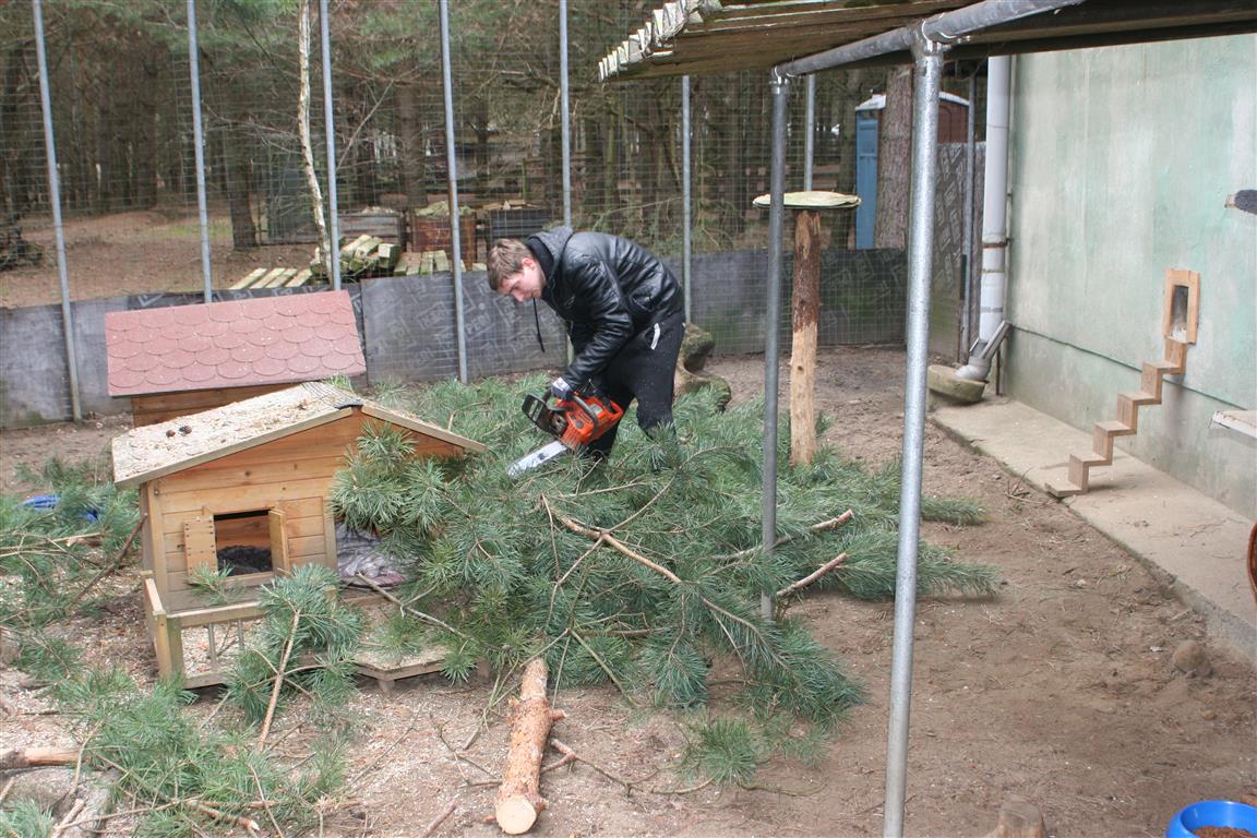 Die Kiefern in den Außengehegen wurden eingekürzt, denn sie dienen als Kletterbäume. Manch eine Katze könnte sich damit rausschwingen, wenn sie zu hoch würden.