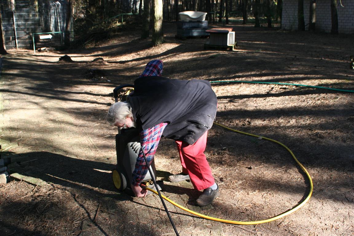 In den Katzenräumen räumten unsere Mitarbeiter parallel alles komplett raus, was nicht niet- und nagelfest war. Dann wurden alle Böden und Wände gründlich gewischt. Anschließend reinigten sie noch einmal jede Fläche und jede Ritze mit Dampf und Hochdruck bei über 100 Grad.