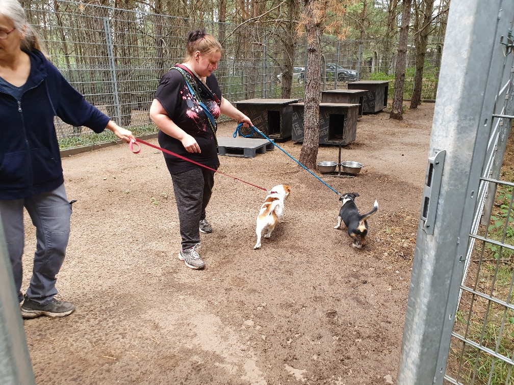Dann ging es in die neuen Gehege mit viel Platz zum gemeinsamen Herumtoben. Die ersten schlossen schnell Freundschaft untereinander und auch mit ihren neuen Tierpflegern. Tierpflegerin Simone hatte Mühe, allen Kuschelwünschen nachzukommen ?- s. Video!