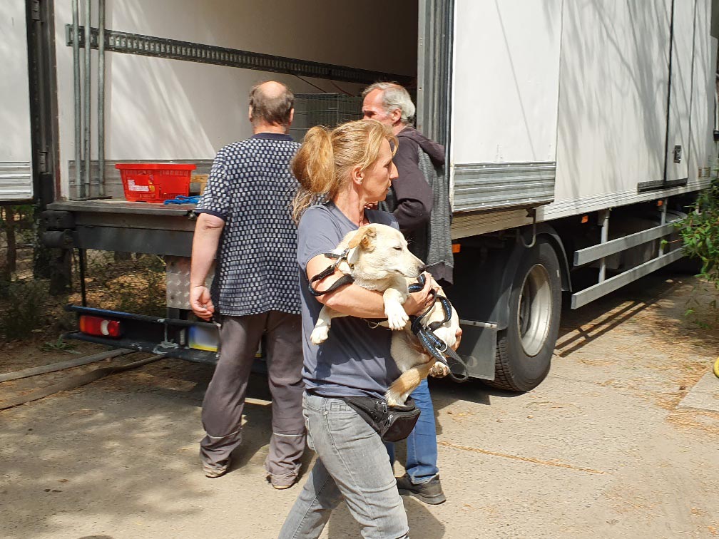 Der polnische Tierheimleiter Maciej gab alle Tiere vom LKW herunter. Wir kontrollierten die Papiere und checkten den Zustand der Tiere.