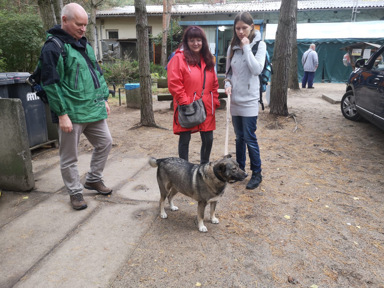 12.45 Uhr: die Gruppe kommt beim Treffpunkt für die Pause an; unser Tierheimleiter stellt Stühle und Bänke auf. Alle wollen sich schnell hinsetzen, damit die Sitze nicht vom Nieselregen nass werden.