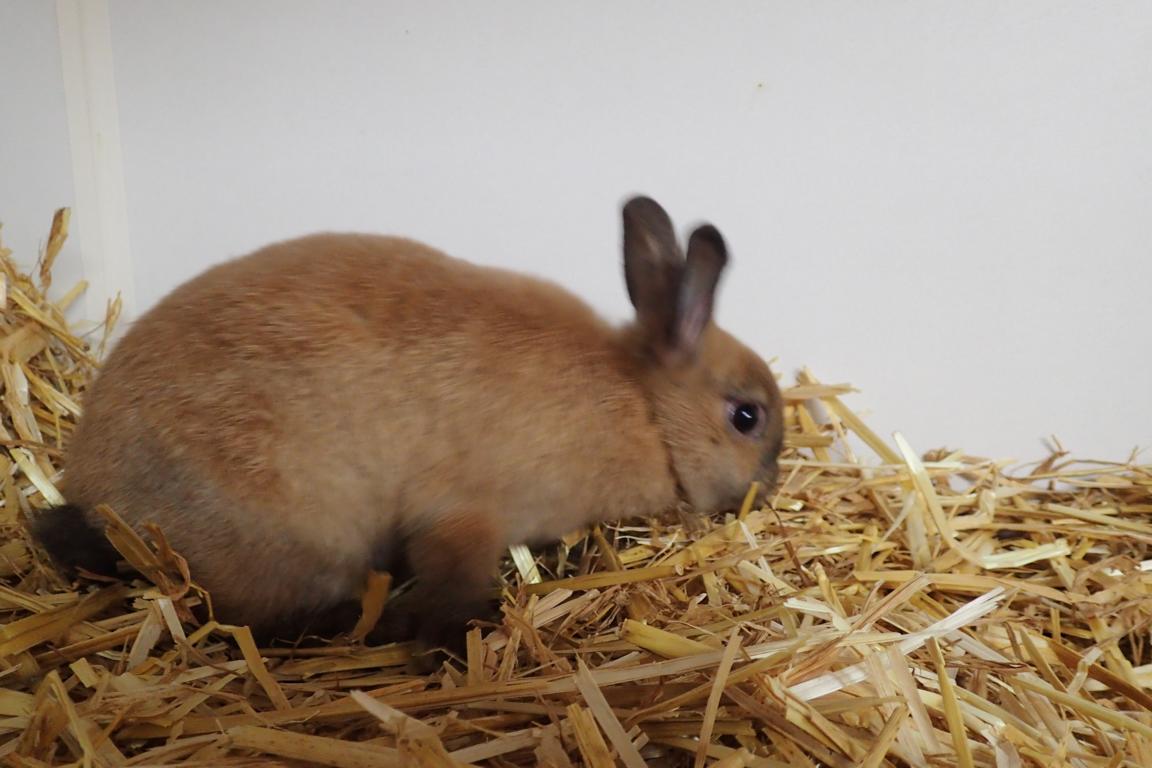 Das braune Zwergkaninchen heißt Loki. Es ist männlich und kastriert.