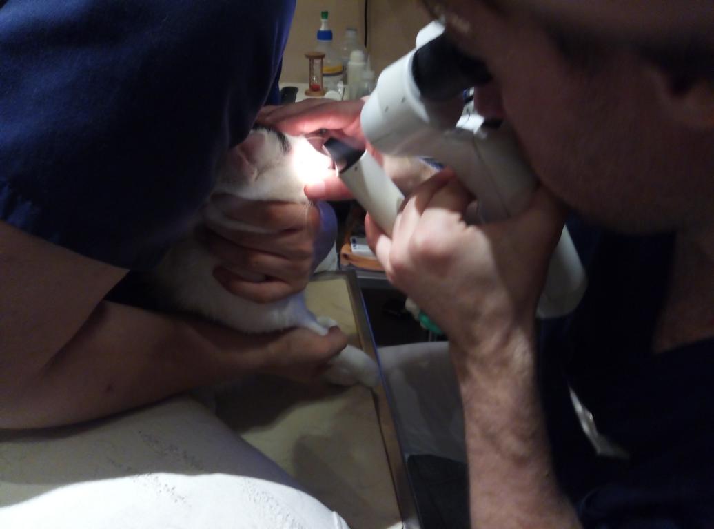 Leider bestätigte es sich: Joel sieht auf dem einen Auge sehr schlecht. Es ist Grauer Star. Eine Behandlungsmöglichkeit gibt es leider nicht. Gern hätten wir ihm geholfen.