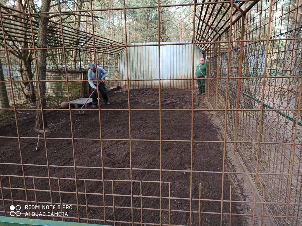 Andreas und Siggi schafften mehr als erwartet, so dass sie unserer Mitarbeiterin Simone sogar noch den Wunsch erfüllen konnten, die Sicherheitsausläufe zu fräsen. Diese waren von den Hunden ganz festgetrampelt und sind nun wieder angenehmer zum Buddeln und Toben.