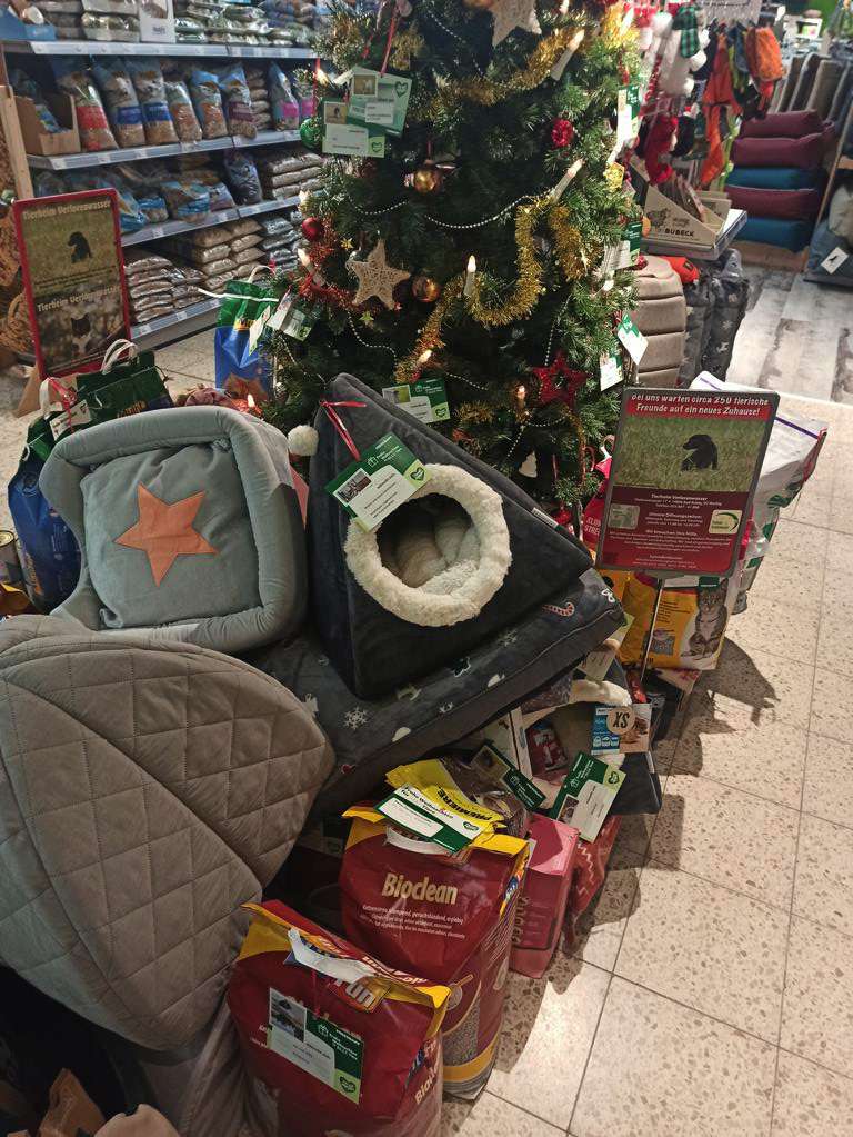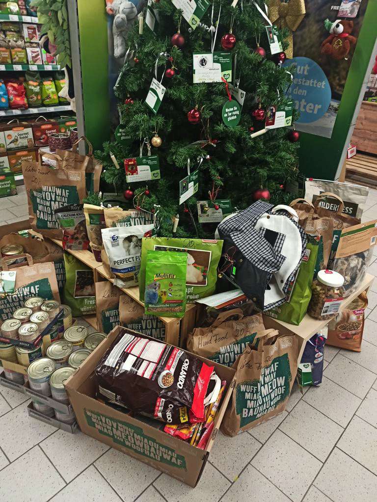 weihnachtsbaumaktionMit Überraschung nahmen wir einen Anruf entgegen, dass wir möglichst schnell im Fressnapf Werder vorbeikommen möchten, um uns Weihnachtsspenden abzuholen.
