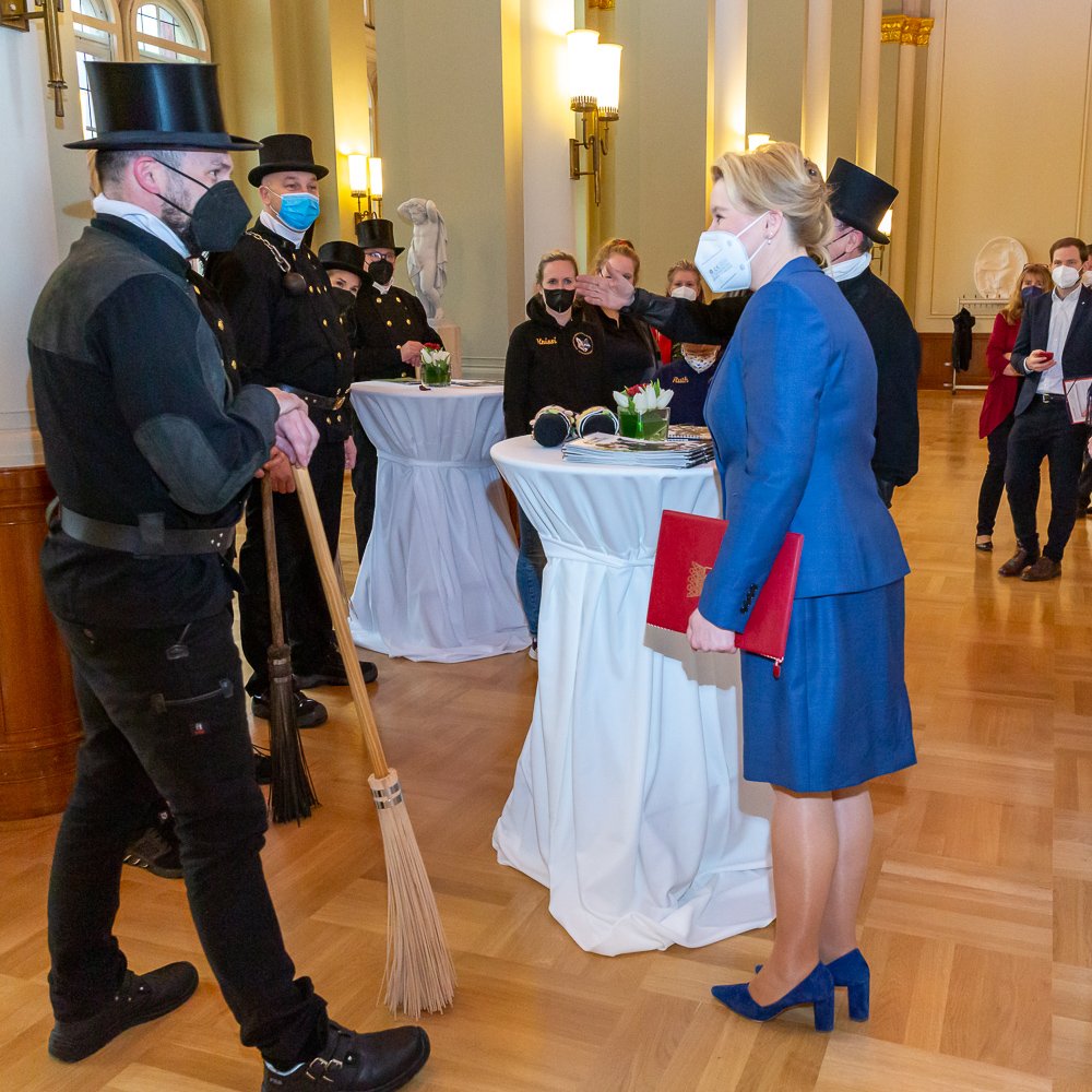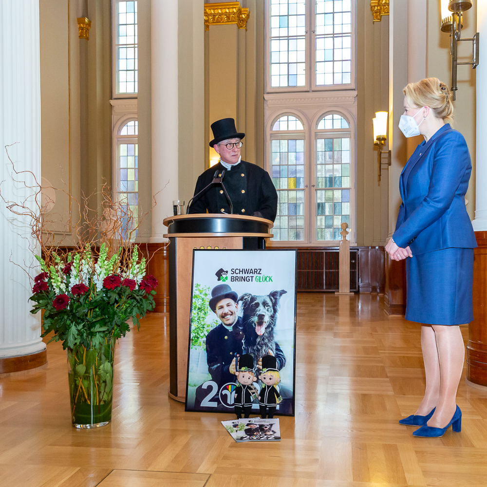 Aus Solidarität ließen sich 12 Schornsteinfeger und Schornsteinfegerinnen mit einem schwarzen Tier fotografieren.