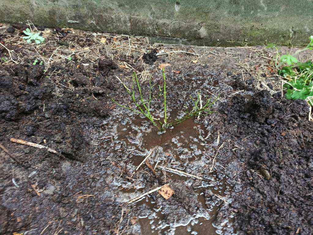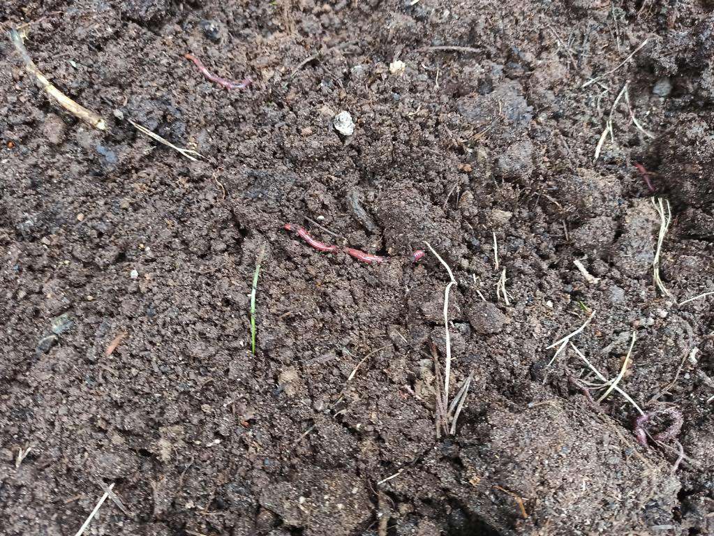 Da der Boden dort nur Staub war, haben wir ihn schon im Herbst ausgetauscht und jetzt noch mit weiterem Kompost aufgefüllt. Ein paar fette Regenwürmer sind dabei mitumgezogen und werden uns helfen, den Boden zu verbessern, damit die Rosen reich blühen.