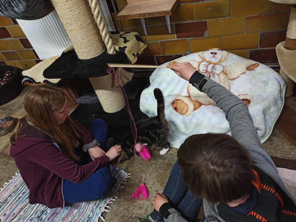 Lea-Sophie und Sven nutzten die Zeit natürlich auch für Gassigänge mit Hunden. Auch eine Spiel- und Schmusestunde mit den Katzen gehörte zum Programm.
