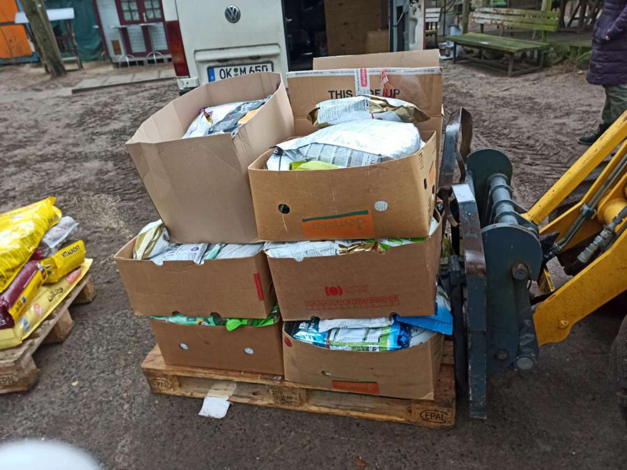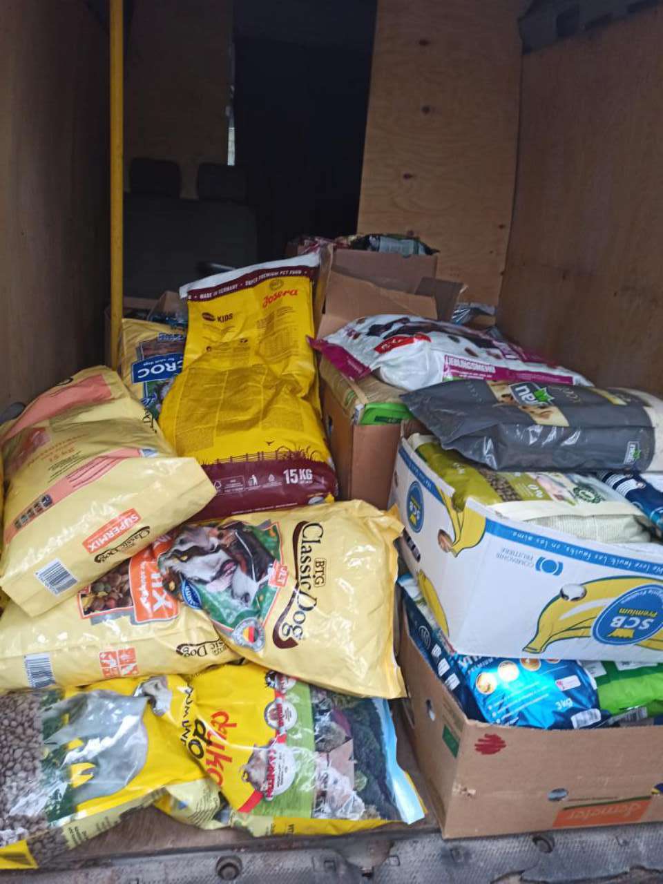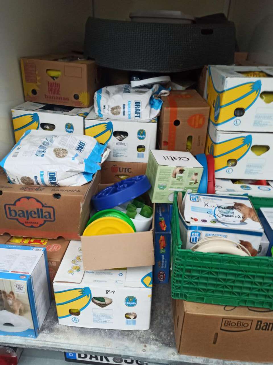 Sie kamen aber nicht mit leerem Fahrzeug. Ein Tierheim hatte eine große Ladung Katzenstreu und andere nützliche Tierbedarfsartikel für uns dabei. Ein anderes spendierte uns Hundefutter.