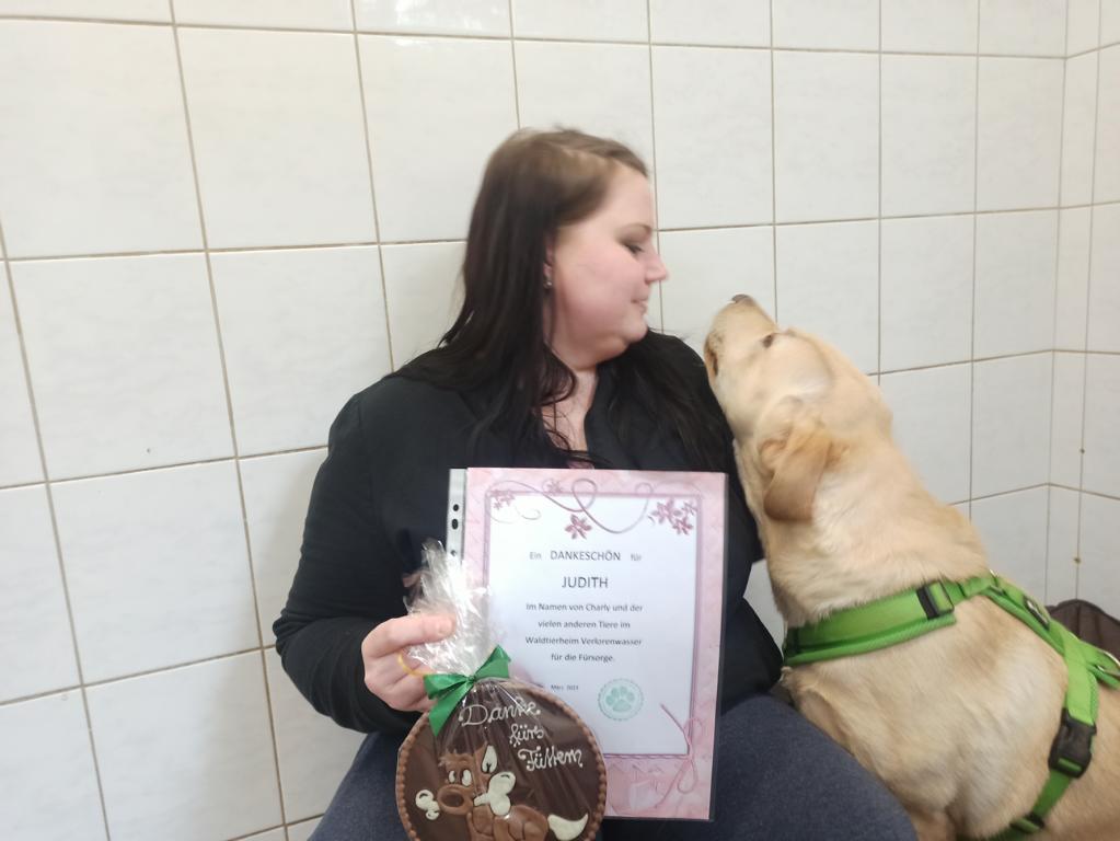 Judith erhielt ein kleines Dankeschön: einen Orden aus Schokolade.