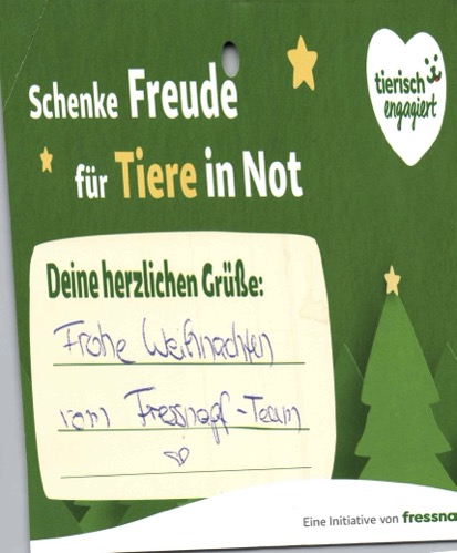 Der Weihnachtsbaum beim Fressnapf in Potsdam für die Tierheimspenden war erst wenige Tage aufgebaut, da durften wir schon die ersten Kisten mit Geschenken abholen.