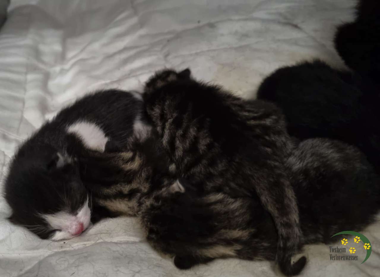 Schon am übernächsten Tag, nachdem wir sie aufgenommen hatten, brachte sie ihre Jungen zur Welt, die nun nicht verwildern werden.