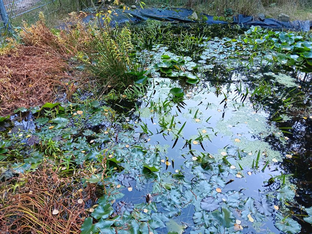 Teich im Waldtierheim Verlorenwasser in Brandenburg, bei BerlinIm Jahr 2013 legten wir einen großen Teich an. Tierfreunde schenkten uns zwei Seerosen, die wir einsetzten. Dann machten wir die nächsten 10 Jahre: Nichts.
