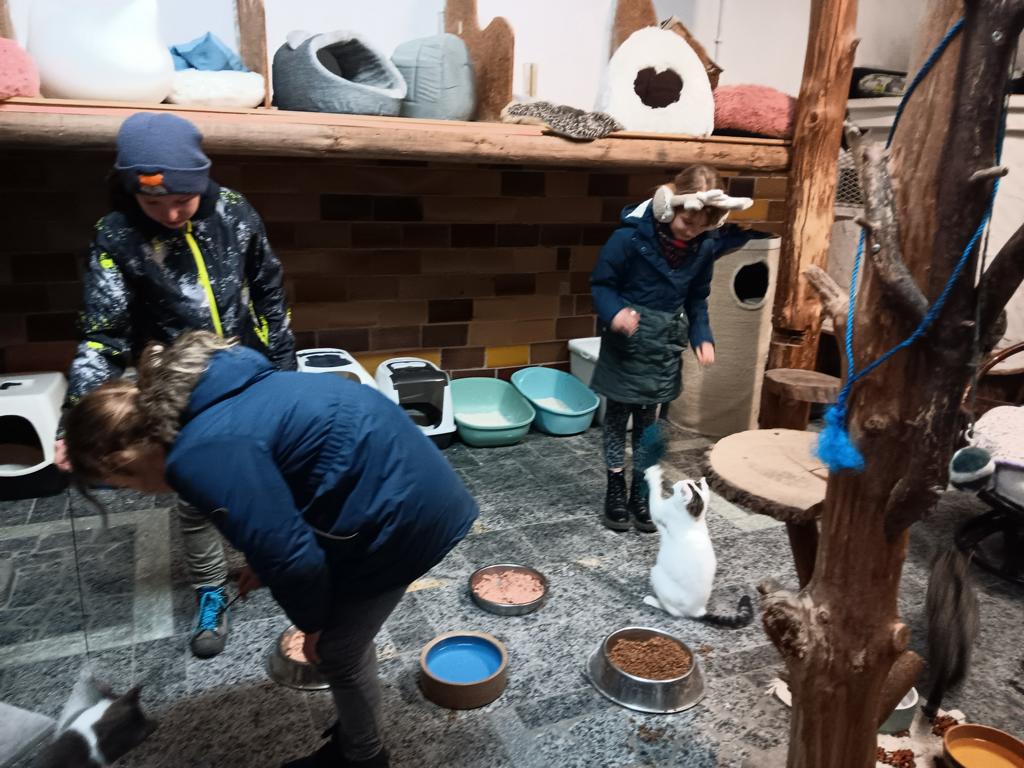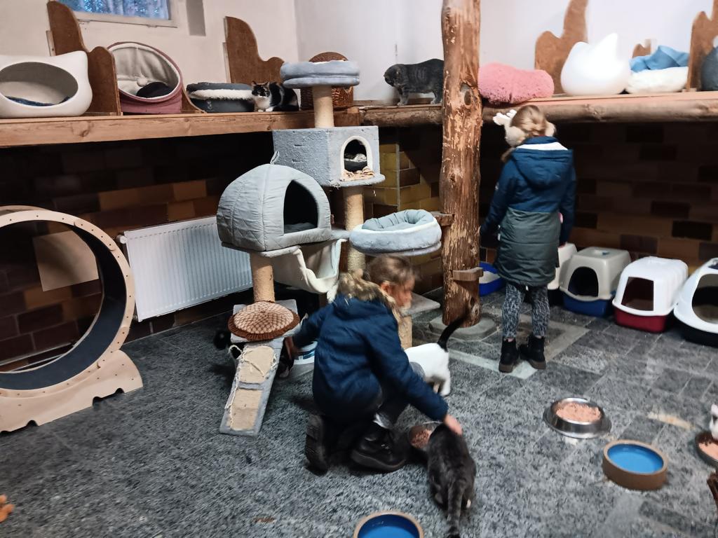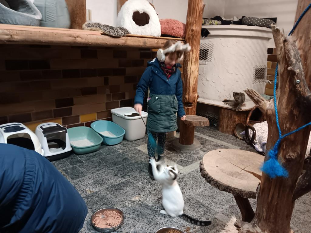 Natürlich musste auch ein bißchen mit den Katzen geschmust und gespielt werden.