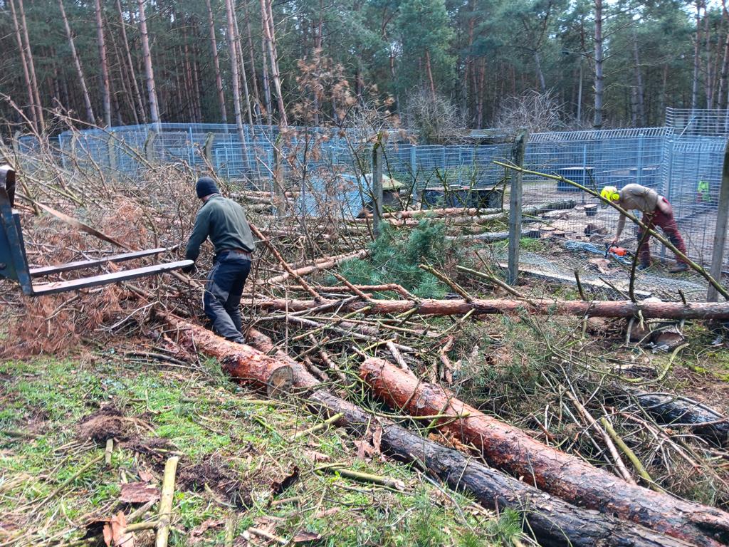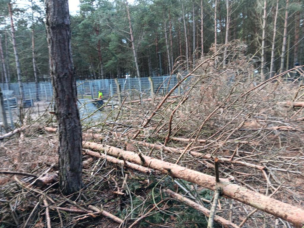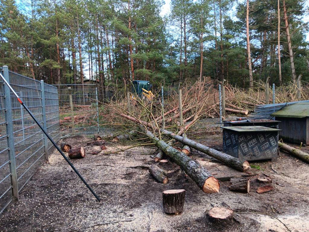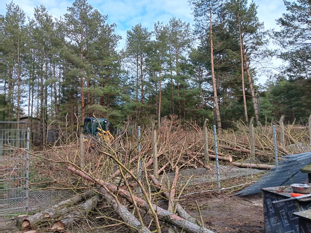 Dabei erhielten wir Unterstützung von einem Landschaftsgärtner, der den größten Teil schon gefällt hat. Weitere müssen noch weichen. Anschließend muss alles geschreddert und weggeräumt werden.
