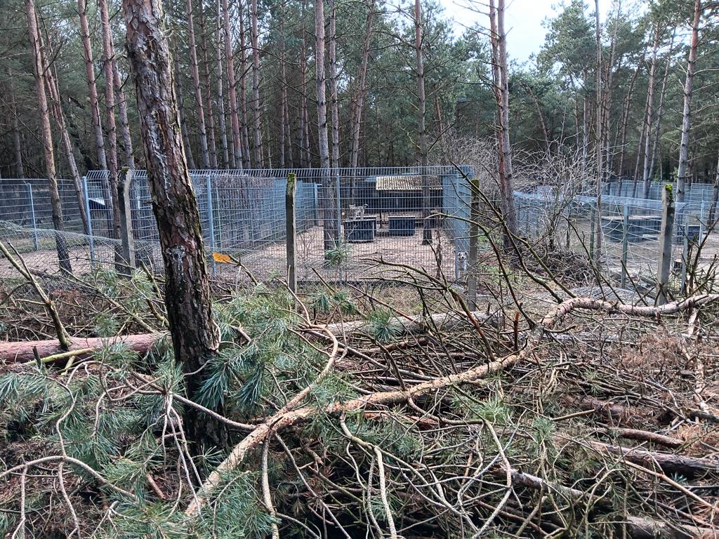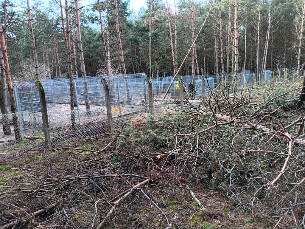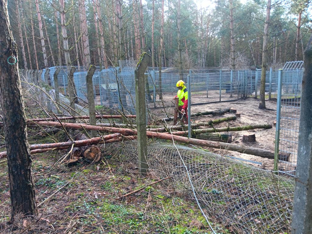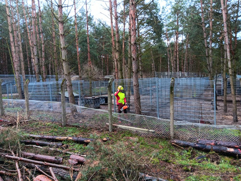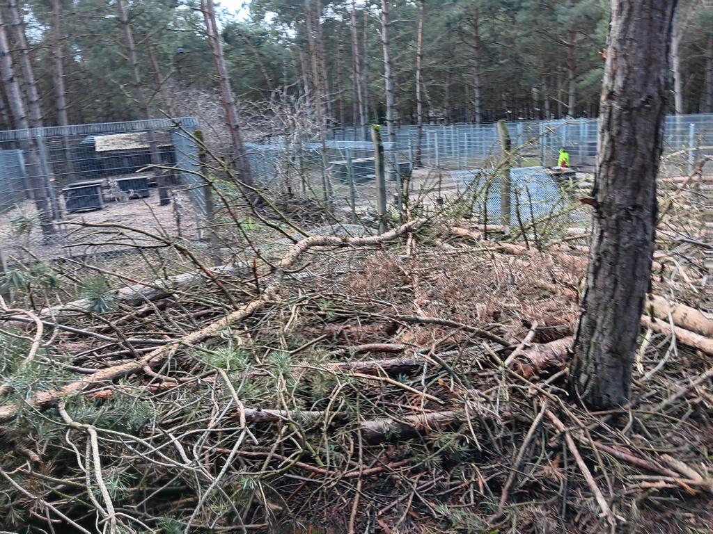 Dabei erhielten wir Unterstützung von einem Landschaftsgärtner, der den größten Teil schon gefällt hat. Weitere müssen noch weichen. Anschließend muss alles geschreddert und weggeräumt werden.