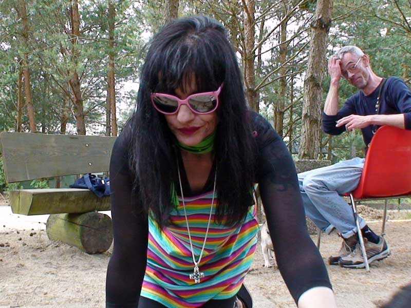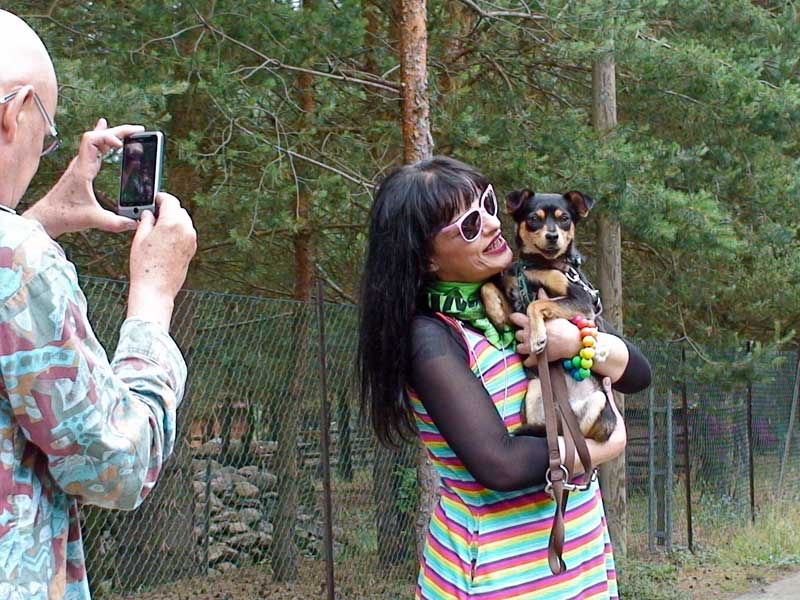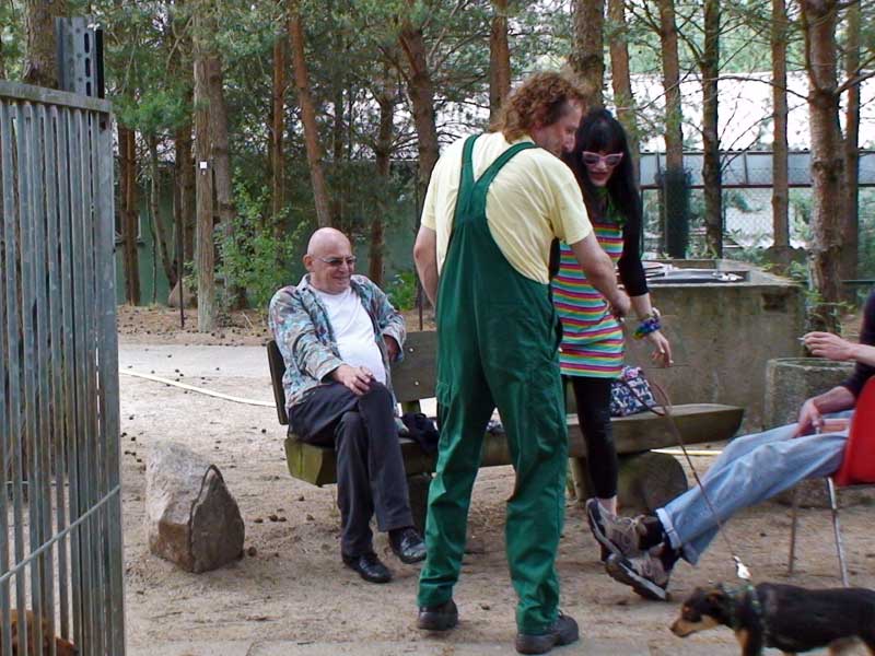 Zur Sicherheit ging unser Chef dann aber doch selber hin und stellte fest: Das ist wirklich Nina Hagen. Gemeinsam mit Freunden war sie gekommen, um sich  einen Hund auszusuchen. Hemingway hatte es ihr angetan und beide führten eine angeregte Unterhaltung, denn Nina Hagen beherrscht die Sprachen des Universums. Letztendlich fiel ihre Wahl dann aber doch auf Bambi.
