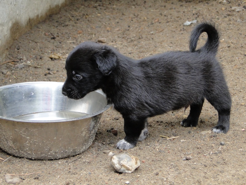 Wenn wir Tiere in Not aufnehmen, sind sie oftmals sehr dürr, denn ihre Besitzer haben sich meist nicht mehr gekümmert. Die kleine schwarze Mischlingshündin Melly schien uns bei ihrer Ankunft dagegen sehr gut genährt und rund.
