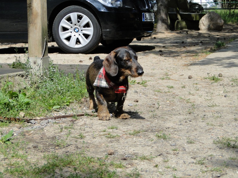 Walter Plathe erschien in Begleitung seines Dackels Polonius. Dieser ist immer mit von der Partie - egal, wo Herrchen zu tun hat. Auch abends im Theater wartet Polonius hinter der Bühne.