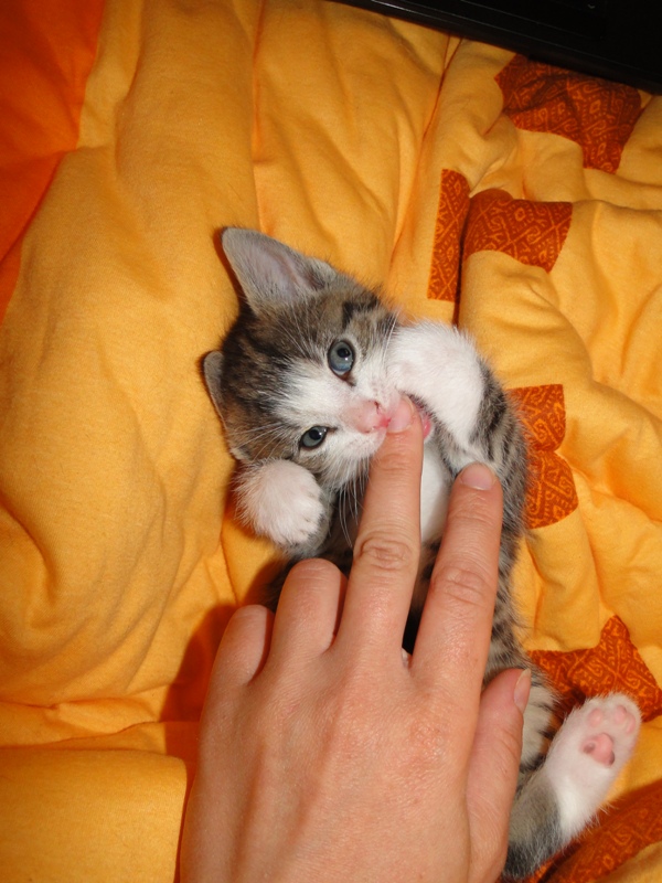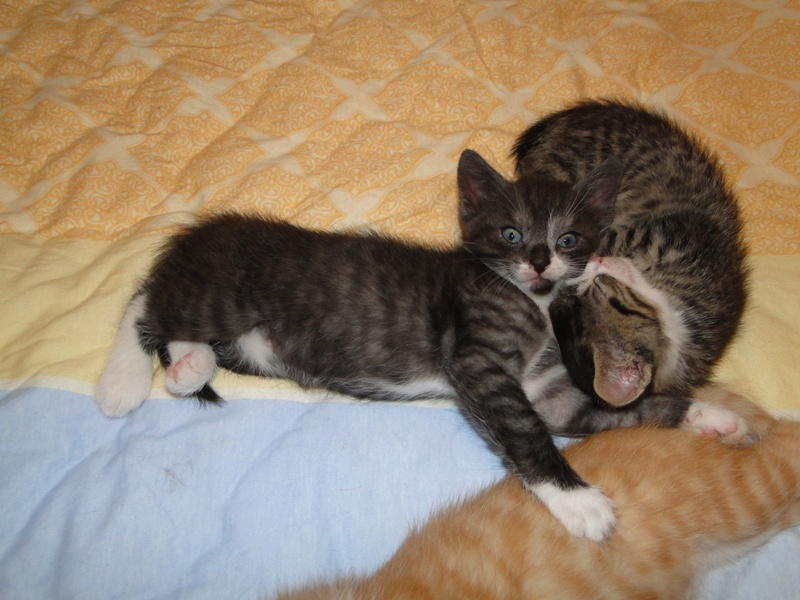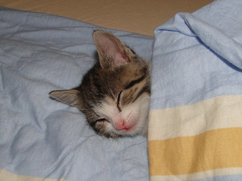 Oh je, ich vermisse die Kleinen jetzt schon, wenn ich daran denke, dass sie dann in ein paar Wochen wieder ausziehen. Sie toben zu sehen bereitet mir jeden Tag auf's Neue einen Riesenspaß. Aber so richtig vermissen werde ich die ruhigen Minuten, in denen sie sich zum Schlafen einfach an mich kuscheln, während ich hier am Laptop sitze und versuche, den Kittenblog auf dem Laufenden zu halten."