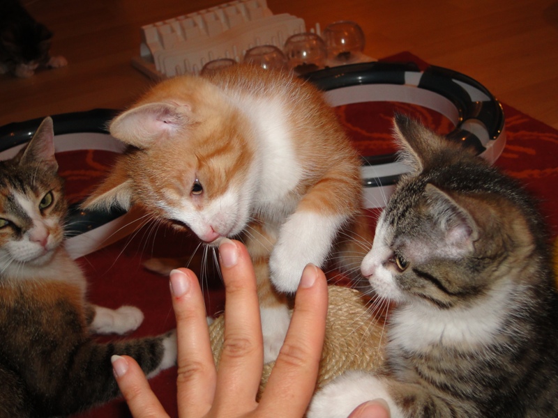 DSC06793Heute, am 23.07, ist der Abschied von meinen Pflegekitten gekommen. Schweren Herzens zieht die kleine Familie nun wieder von mir zu Hause ins Tierheim zur Vermittlung.