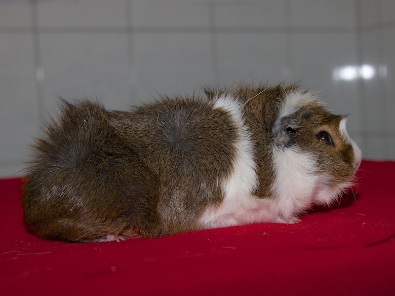 Auch die Meerschweinchen waren dürr und ungepflegt. (Die beiden Fotos mit dem trockenen Untergrund entstanden bei uns im Tierheim).