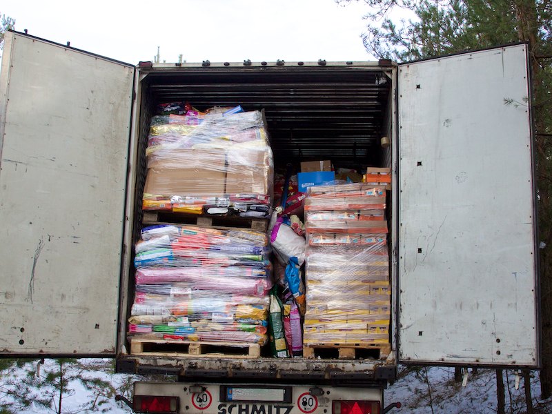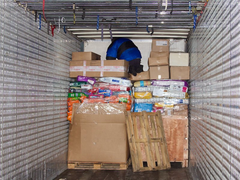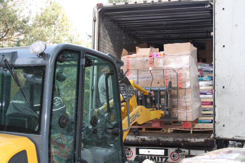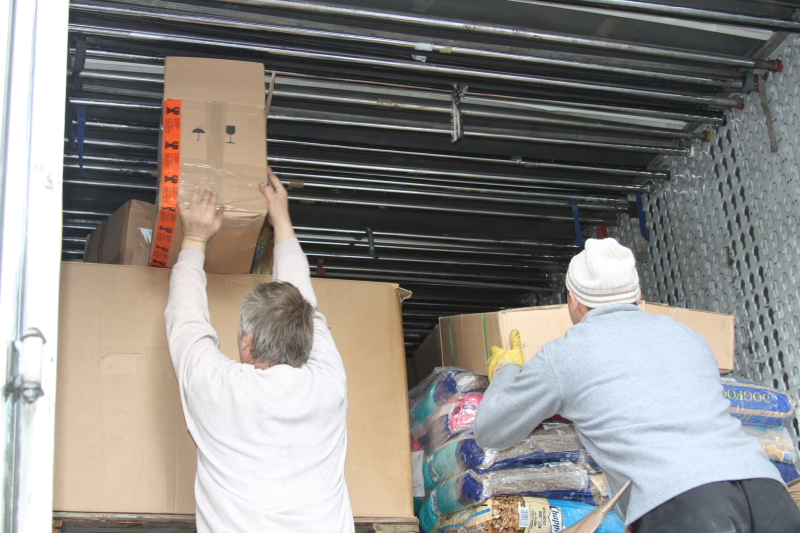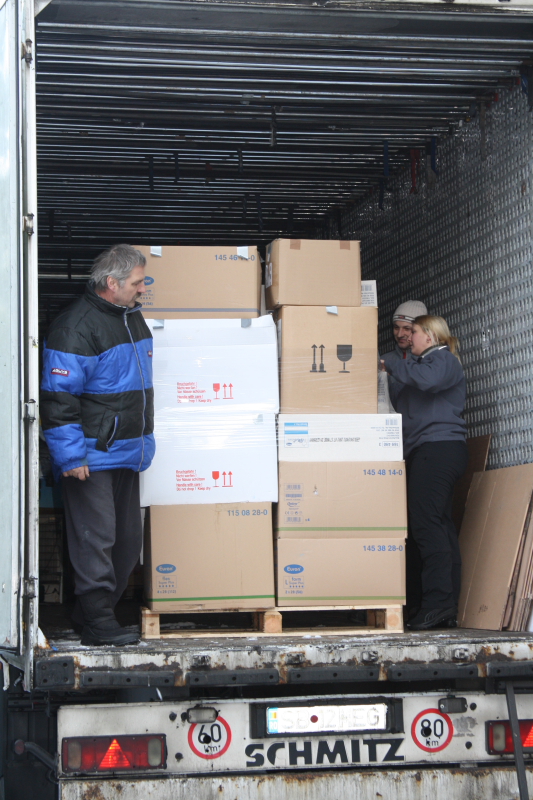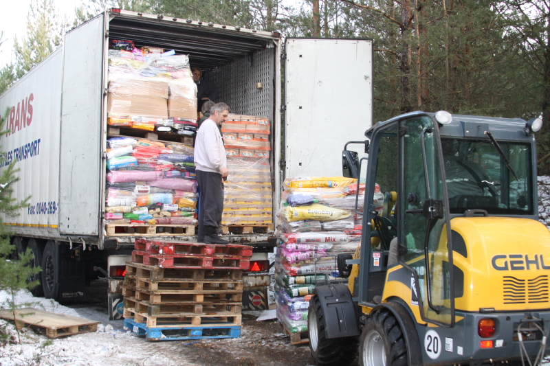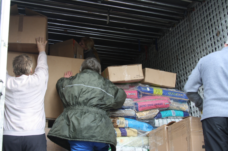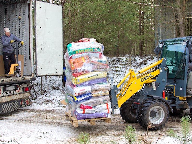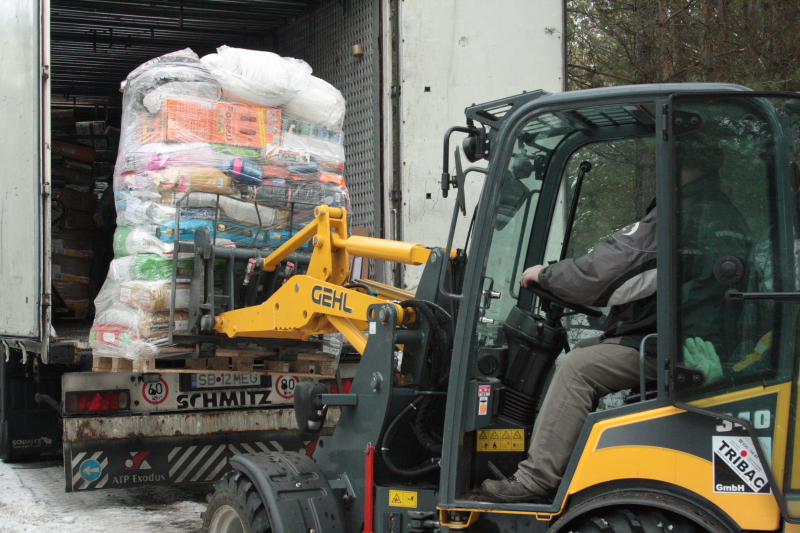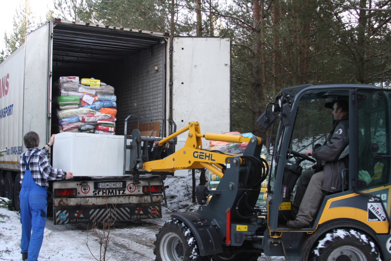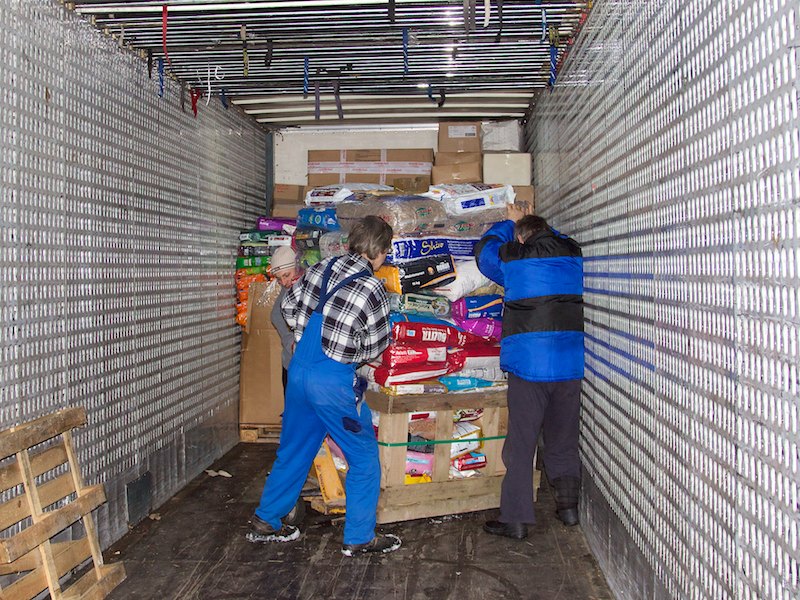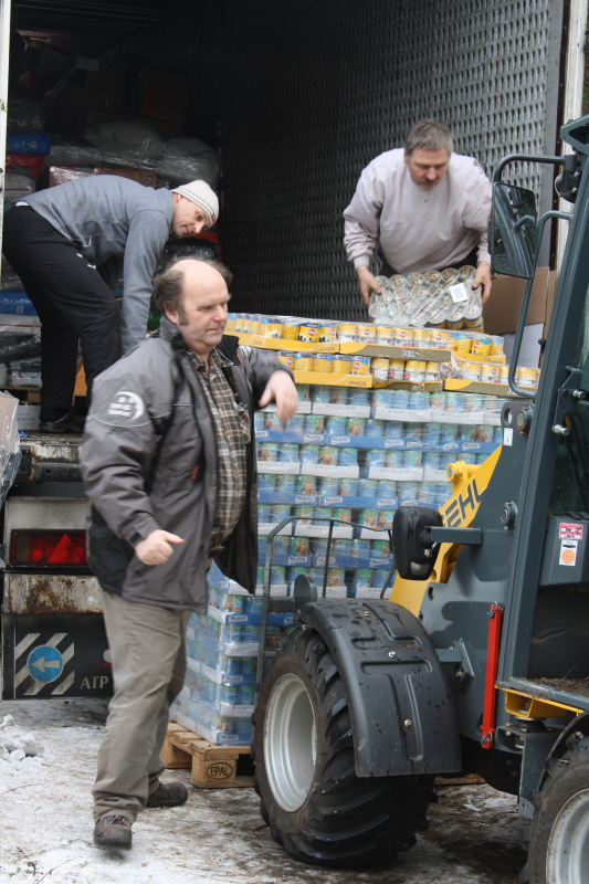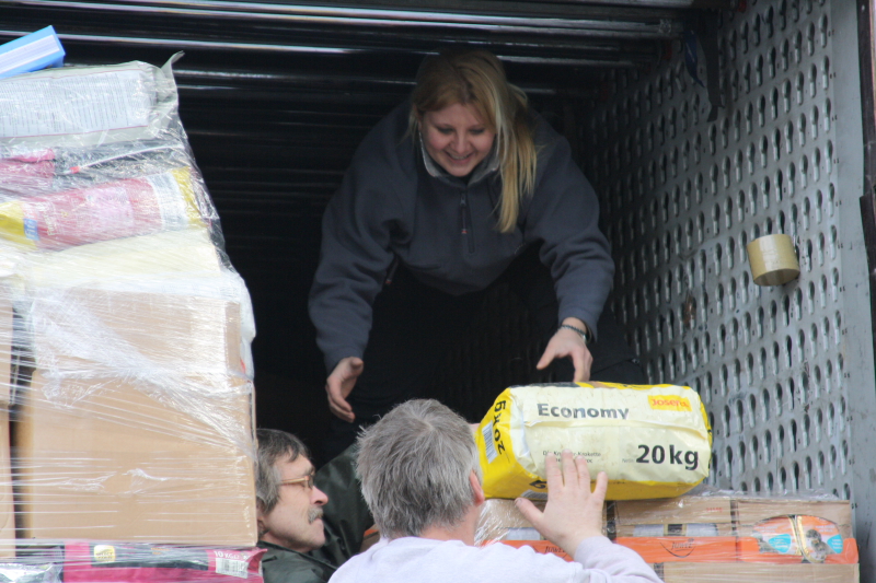 Am 01.02. war es nun soweit: 20 Tonnen Futter und 3 Tonnen Sachspenden (Decken, Werkzeuge, Kühlschränke, Handschuhe, Rollstühle und vieles mehr) wurden von Ehrenamtlern und Mitarbeitern unseres Tierheimes verladen.