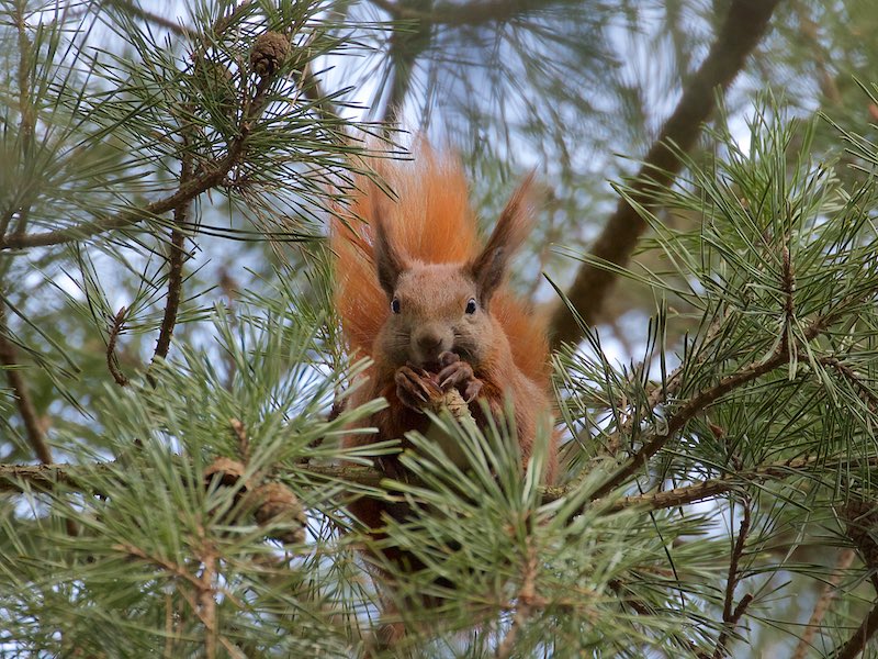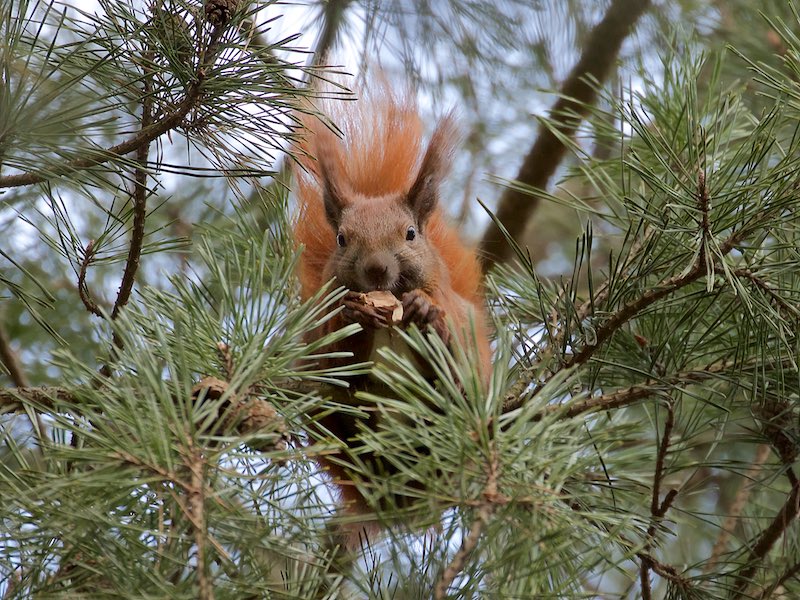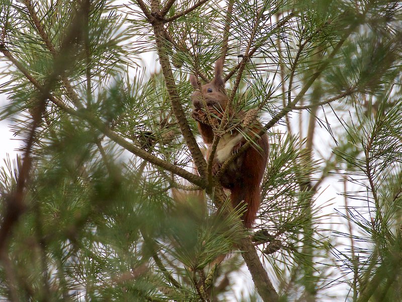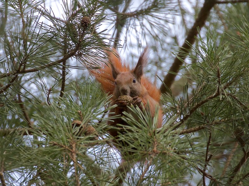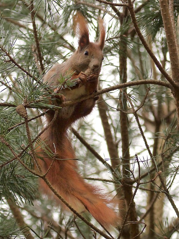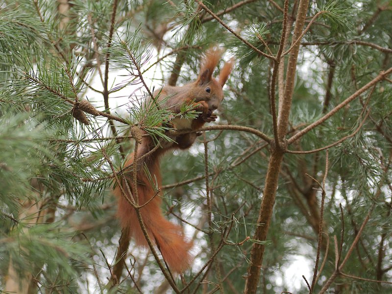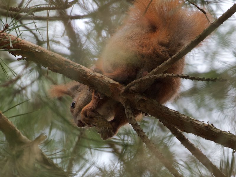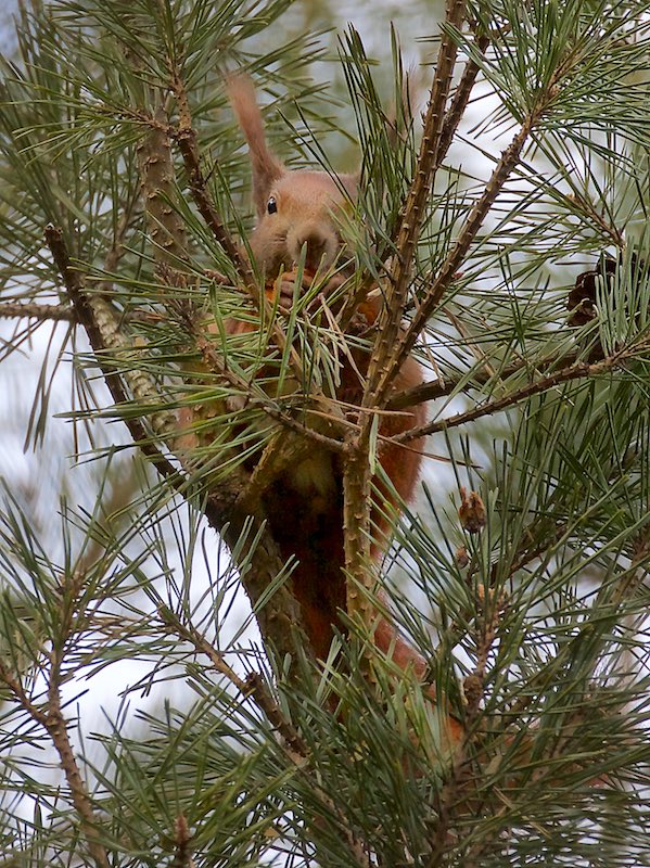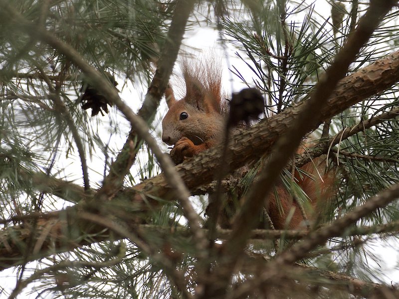Wer genau hinsieht, kann erkennen, dass es sogar zwei Eichhörnchen sind. Icke hat sich nämlich verliebt und kommt seit ein paar Wochen nur noch mit Partnerin. Beide toben durch's Geäst, dass es eine Freude ist.