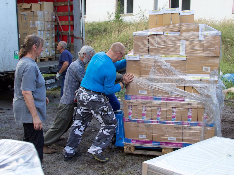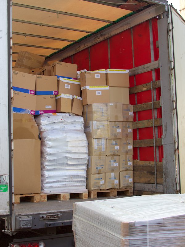 Etliche Kilo Welpenmilchpulver sind an Bord - ebenso 800 kg Waschpulver. Das ist fast eine Tonne und dürfte selbst in der SMEURA ein paar Tage reichen.