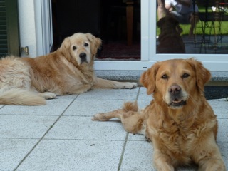 Cherry hat sich auch schon ein paar Lieblingsplätze im Garten ausgesucht, begrüßt uns morgens mit einem freudigen Wedeln und wälzt sich mit Wonne auf dem Rasen. Wir glauben, dass auch er sehr gerne bei uns ist.