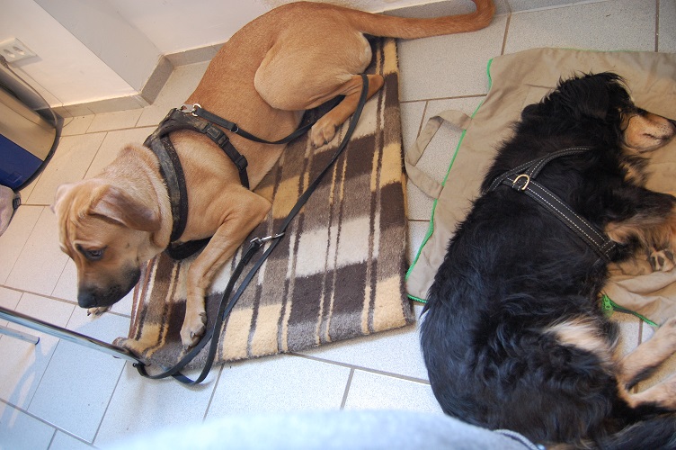 Jakob ist, wo auch immer es möglich ist, dabei: Bei Ausflügen, Familientreffen, im Urlaub. Sogar bei den Praxisseminaren meiner Ausbildung zur Hundephysiotherapeutin (und nein, Jakob braucht keine Krankengymnastik) war er immer mit dabei, schlief während des Unterrichts bzw. war Übungshund und in den Pausen ging es gemeinsam mit den anderen Hunden in den Garten oder raus aufs Feld.