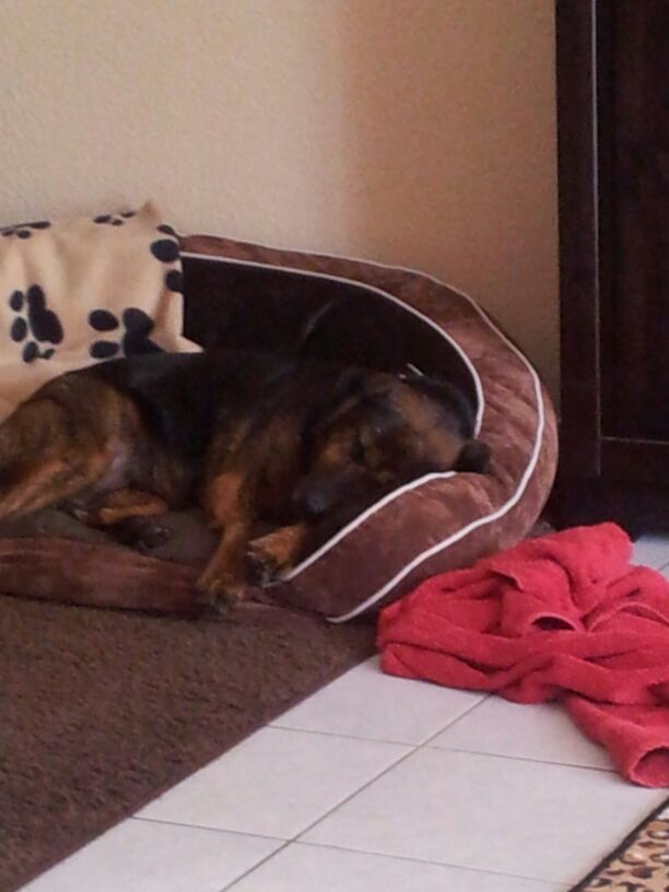 So naja und langsam lass ich auch raushängen, dass ich ein rechtes Früchtchen bin. Wenn ich was tolles zu essen rieche, flippe ich schier aus und höre nichts mehr, ich trickse meine Leute gern aus indem ich morgendliche Gassiwilligkeit vortäusche und im letzten Moment wieder in die Poofe flüchte oder abends demonstrativ um 22 Uhr zu Bett gehe obwohl um 22:30Uhr die letzte Gassirunde ansteht. Is aber alles nix Schlimmes wenn ich das unterdrückte Lachen meiner Leute richtig deute!? Und ich weiss, daß ich das große Glück für die beiden bin - das lassen sie mich spüren. Mir gehts also richtig gut... wir sehen uns spätestens beim Sommerfest. Vergesst mich nicht bis dahin, ihr seid in meinem Herzen!"