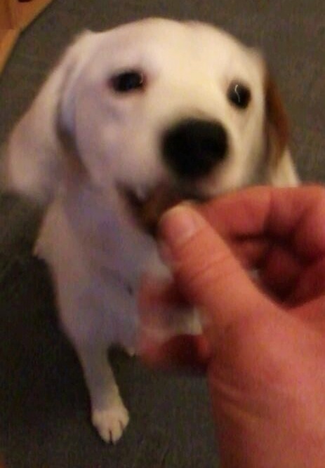 Mittlerweile kommt sie schon mit Schwanzwedeln in die Küche weil sie genau weiß wo ihr Futter ist!