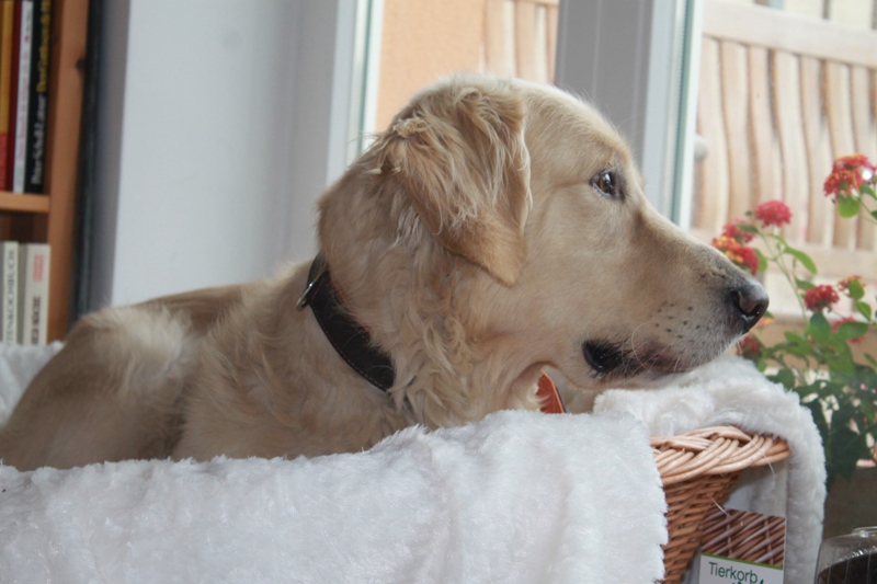 Buddy ist gut in seinem neuen zu Hause angekommen. Die Fahrt mit dem Auto war tierisch anstrengend für ihn und er war ganz schön nervös. Ein Glück hatten wir eine gute Einführung von Ihnen. Nach einer längeren Reviererkundung haben wir dann Buddy sein neues zuhause gezeigt. Er ist auch gleich ins Körbchen gehüpft, wobei wir das Körbchen gestern abend noch gegen eine Decke eingetauscht haben.