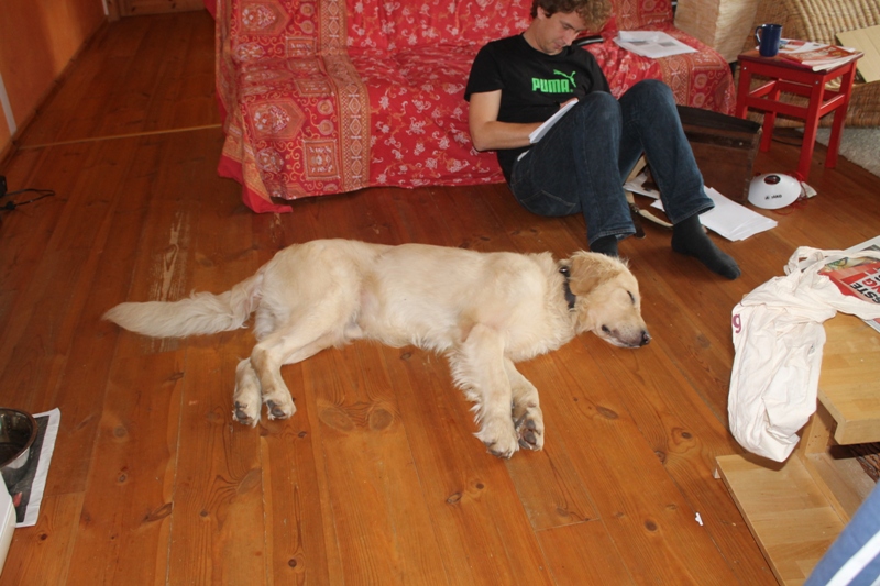Er streckt sich einfach beim schlafen lieber aus und braucht halt viel Platz. Buddy hat super gegessen und auch keinen Durchfall bekommen.