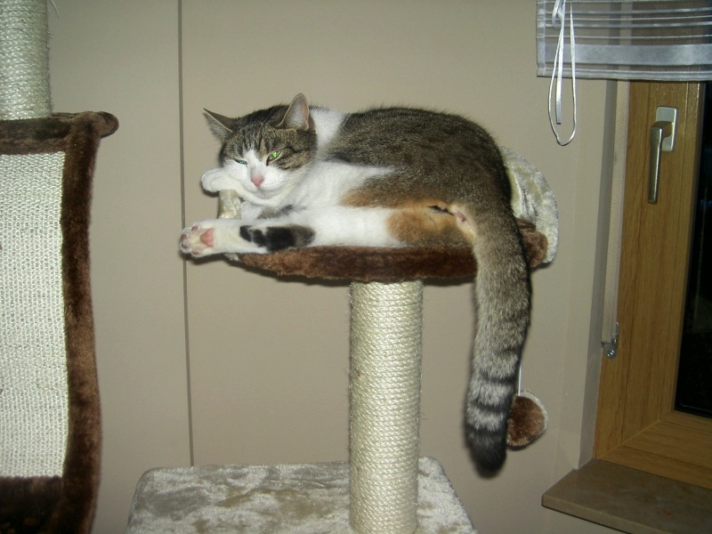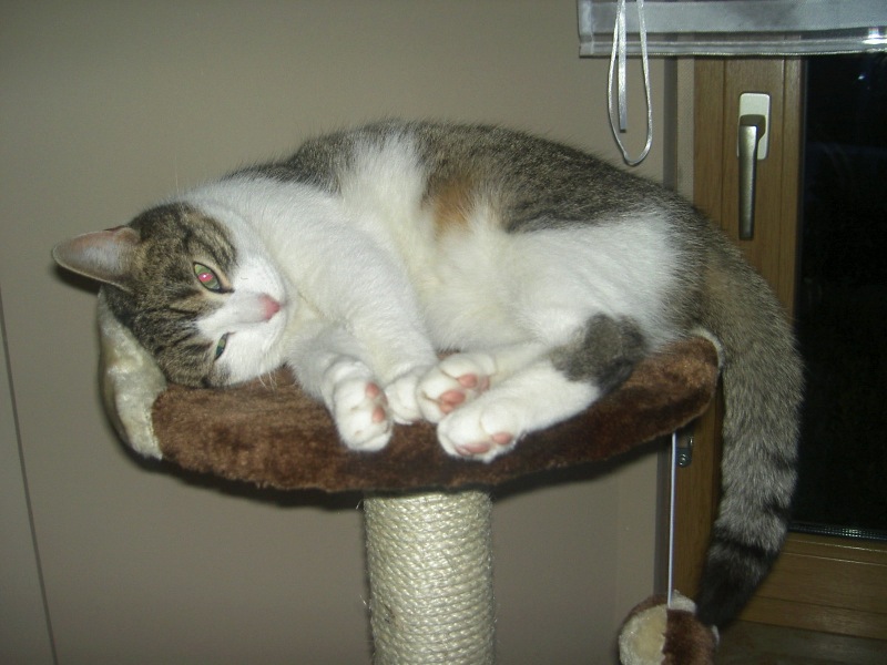 Seit gestern liegt sie über Mittag im Sessel,wenn Herrchen seinen Wochenendmittagsschlaf hält!!