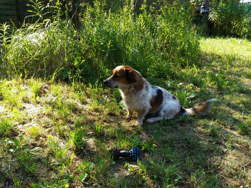 ...allerdings war das VOR dem Gewitter, das ihn zum Ausrasten brachte,  und uns zu schweißgebadeten Hundeanimateuren werden ließ.