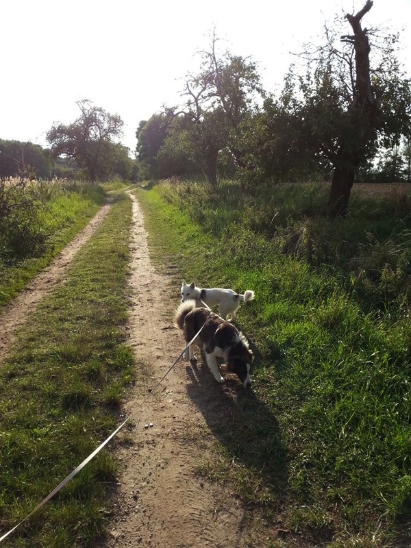 Heute ist Lupi sogar das erste Mal von allein ins Haus gegangen; bisher haben wir sie rein getragen, weil sie immer noch etwas Angst hat hinein zu gehen. Bei den Gassi Runden blüht sie auf und orientiert sich sehr an Lillith. Es macht Spaß diese Lebensfreude zu sehen.