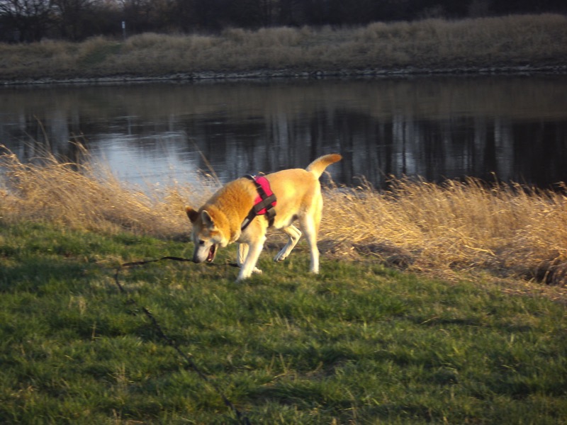 Im strömenden Regen, waren wir heute trotzdem einen langen Spaziergang machen, denn er hatte ja seinen Regenmantel an und dann ab auf die Fußbodenheizung zum Trocknen und anschließend eine Mütze voll Schlaf.