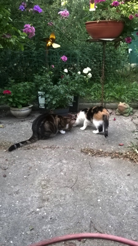 "Liebes Team vom Tierheim Verlorenwasser, liebe Frau T.,mittlerweile ist es fast ein halbes Jahr her, dass wir Bärchen (wir haben ihn allerdings in Gino umgetauft) bei uns aufgenommen haben. Inzwischen ist aus dem kleinen "Angstkater" ein regelrechter Kampfschmuser und recht selbstbewußter Freigänger geworden, der sich sogar mit Nachbars rotem Garfield gut versteht, was nicht selbstverständlich ist. Wir erleben immer wieder Raufereien Garfields mit anderen Katern aus der Nachbarschaft. Aber Gino hat er offensichtlich "adoptiert" und das beruhigt uns schon sehr. Inzwischen ist Gino auch nicht mehr allein - wir haben nun auch eine kleine Gini. Die Freundin unseres Sohnes hatte sich eine kleine Katze zugelegt, allerdings leidet unser Sohn sehr stark unter Katzenhaarallergie und in der kleinen Wohnung und da beide im Herbst Eltern werden ging das alles nicht mehr. Also haben wir kurzerhand auch noch Gini aufgenommen, Platz ist ja da. Anfangs schmollte Gino sehr mit uns und ließ sich auch mit Extrastreicheleinheiten nicht umstimmen. Er kam nicht mehr zum Fressen und blieb auch über Nacht weg. Wir hatten uns schon große Sorgen gemacht, aber inzwischen vertragen sich alle Katzen gut und akzeptieren einander. Außerdem hat jeder sein Refugium und so klappt jetzt alles bestens. Und auch unser Schmuser ist - Gott sei Dank - wieder der Alte. Ich habe einmal ein paar Bilder beigefügt. Vielleicht kommen wir demnächst noch einmal ins Tierheim.