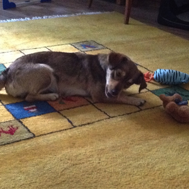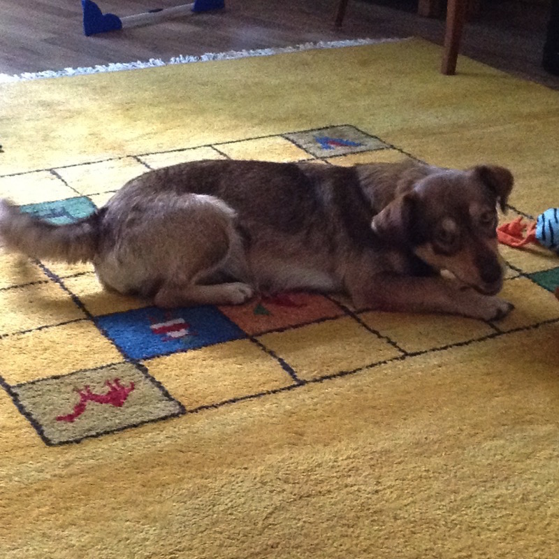 Spielzeug. Aber vor allem einen Teppich ganz für mich allein. Der liegt im Schlafzimmer,