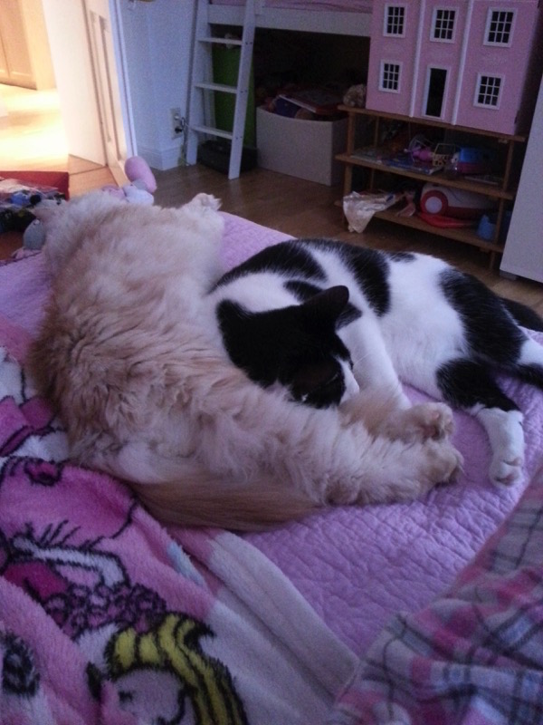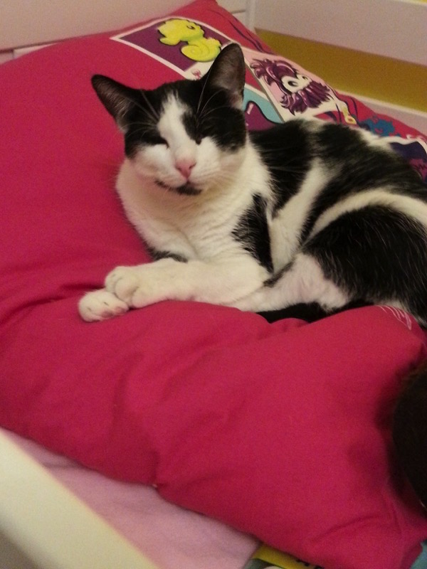 "Hallo liebes Tierheim-Team,wir senden mal wieder herzliche Grüße von Magic, die seit Ende Mai 2015 bei uns ist. Inzwischen ist sie eine tiefenentspannte Katze, die seelenruhig auf der Couchlehne schläft, selbst wenn es um sie herum mal lauter ist. Unsere beiden Kater hat sie gut im Griff und sogar der ältere lässt sich inzwischen von ihr zum spielen hinreißen. Sie ist immer noch sehr verschmust und holt sich täglich ihre Streiecheleinheiten. Besonders gern ist sie bei unserer großen Tochter. Mit ihr schläft sie gern Kopf an Kopf.