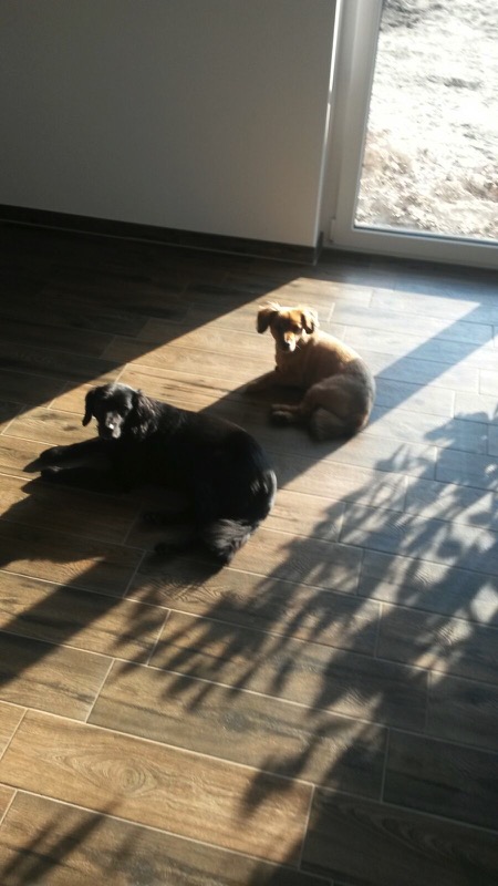 auch wir wollen uns mal wieder melden. Nun sind wir mittlerweile schon 6 Jahre bei unseren Dosenöffnern und super glücklich. Die beiden sind mit uns Anfang des Jahres aufs Dorf gezogen, dass ist vielleicht ein Spaß. Hier gibt es so viel zu erkunden. Viele Katzen zum verbellen, Kühe zum reden und auch viele Düfte zum "baden". Frauchen meckert immer wenn ich (Teddy) das mache und danach steckt sie mich immer in die Badewanne. Versteh ich nicht. Auch Amigo fühlt sich super wohl bei den langen Spaziergängen auf den Feldern. Nun brauchen wir fast gar nicht mehr an der Leine laufen, außer wenn wir durch das Dorf ziehen. Und wenn wir dann wieder Heim kommen, müssen wir uns erst mal auf die Couch legen und ein ausgiebiges Schläfchen machen. Anbei schicken wir euch noch ein paar Bilder.