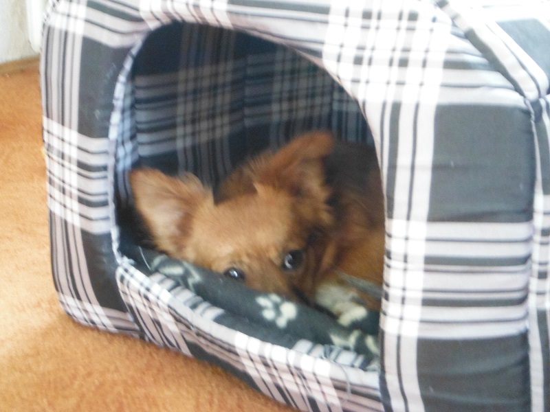 Sie schläft nachts in ihrem Häuschen. Den Garten haben wir auch schon gesichert, sodas sie frei toben kann."