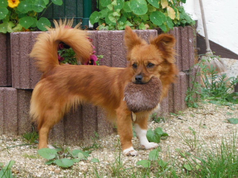 Sie hat sich sehr gut eingelebt, hört schon ganz gut auf ihren Namen. Schlafen tut sie in ihrem Häuschen und am Tag tobt sie durch den Garten. Stubenrein ist sie auch so gut wie. Mit dem umlegen des Halsbandes hat sie noch ein bißchen Probleme, manchmal läuft sie erst mal ein Stückchen weg und hat Angst, läßt sich aber mit Lecklis anlocken. Sonst haben wir keine Probleme. Alles Top!!