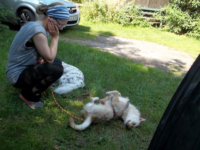 nun ist es schon eine Woche her, dass Kaya bei uns eingezogen ist und wir wollten uns mal melden. Wir sind ja so begeistert von der kleinen Maus und haben sie richtig ins Herz geschlossen. Sie hat sich gut eingelegt und versteht sich prima mit unserem Ludwig. Sie ist sehr intelligent und bemüht, alles richtig zu machen und hört richtig gut auf ihren Namen. Sie ist mal sehr verschmust, dann wieder ein Clown und für alles Neue offen. Sie bereichert unser Leben sehr und ist ein ganz feiner Hund! Wir freuen uns sehr auf die Zukunft mit ihr.