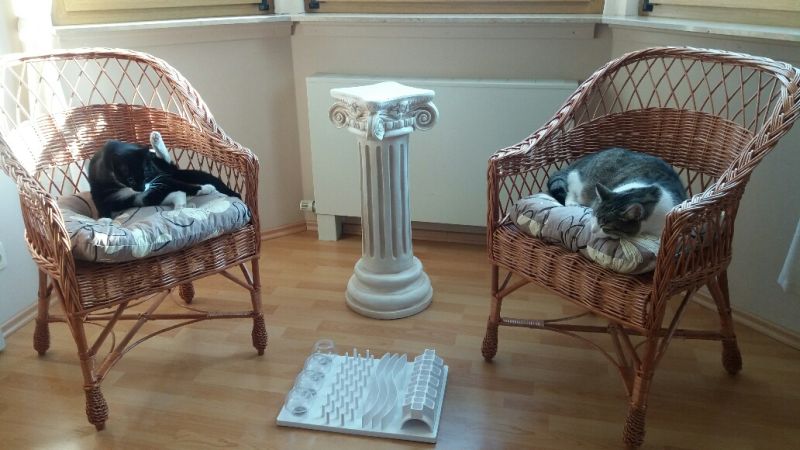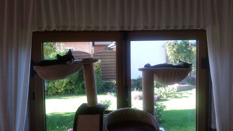 Der Kratzbaum wurde für 2 Katzen um gebaut und jede Mietze hat seinen Platz!