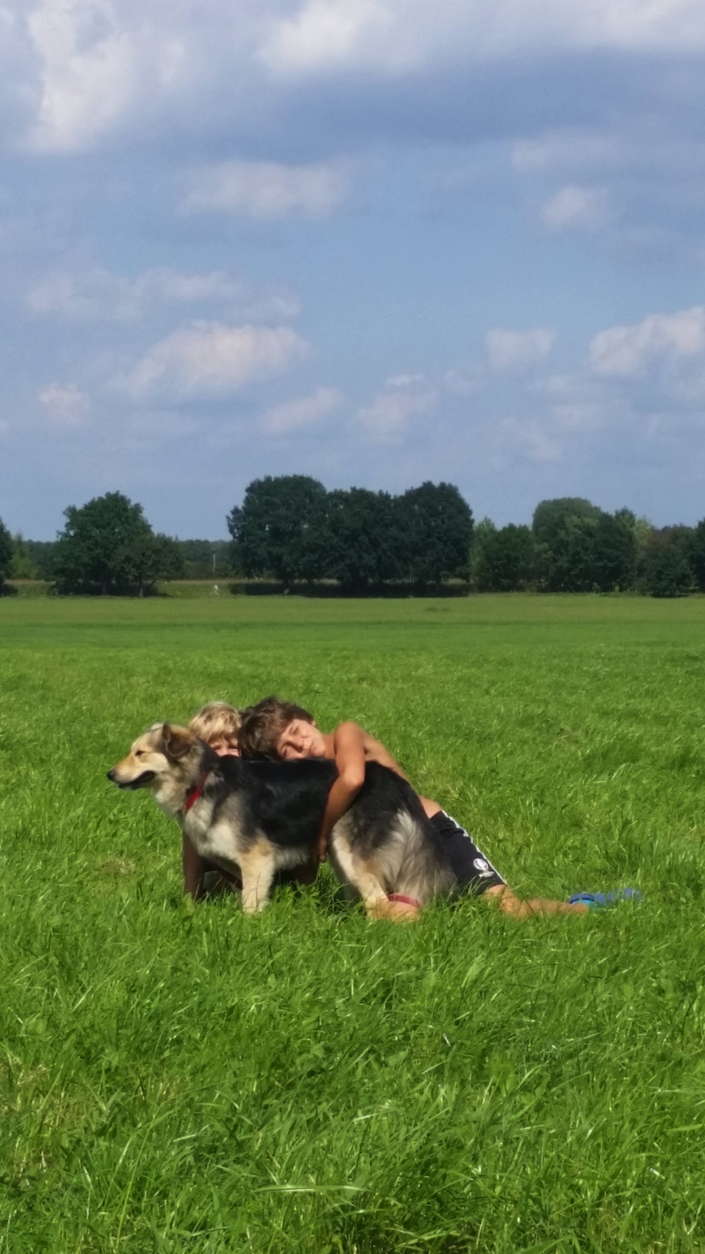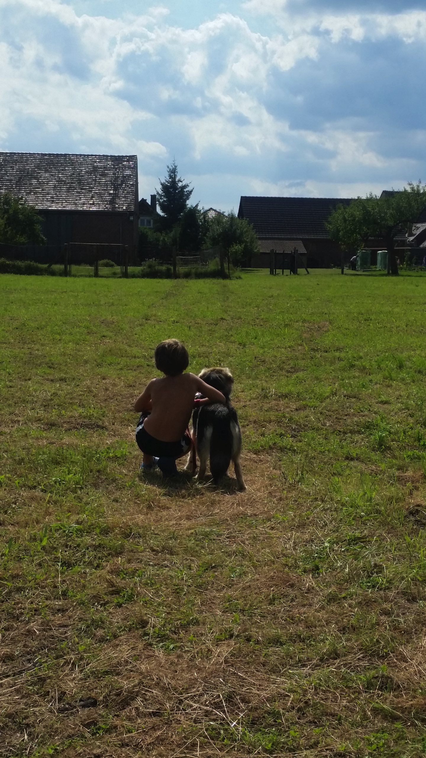 "Hallo Ihr Lieben. ..wieder ein kleiner Gruß von unserem neuen Sonnenschein. Sie blüht förmlich auf...Ist ein selbstbewusster Hund ,der mal bellt , wenn andere Hunde am Zaun vorbei gehen. .Sie hat das Herz der Nachbarschaft erobert und einige Hundefreunde zum spielen gefunden.